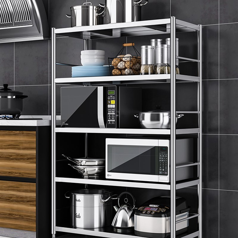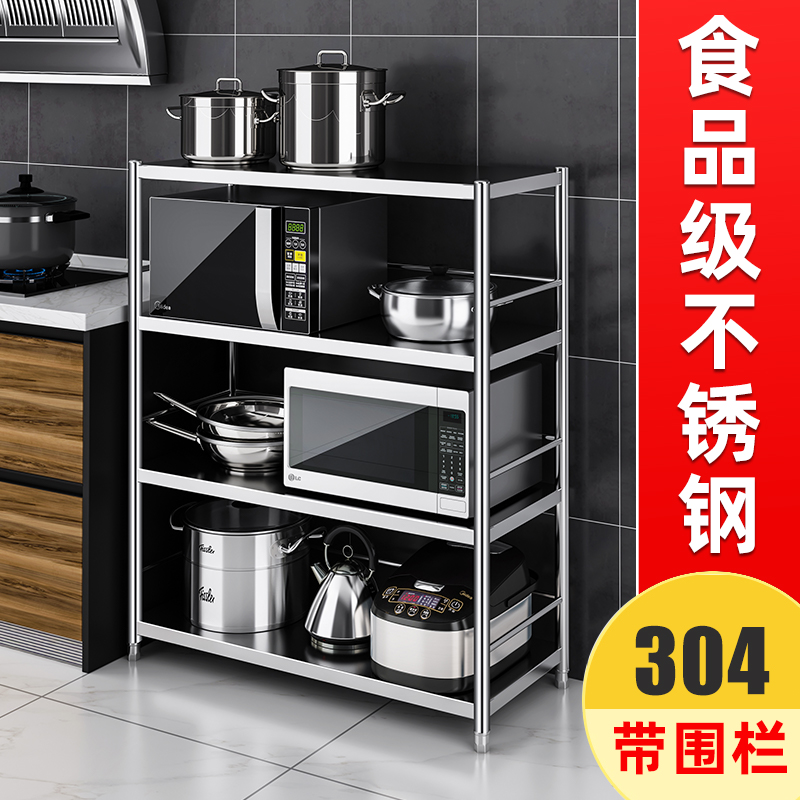 304加厚置物架厨房落地式多层微波炉架子不锈钢收纳菜放锅多功能