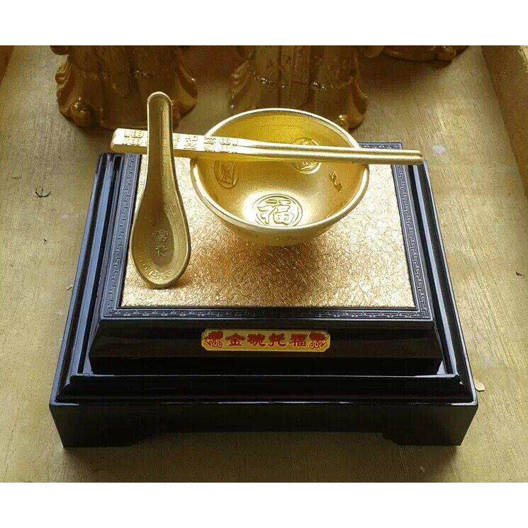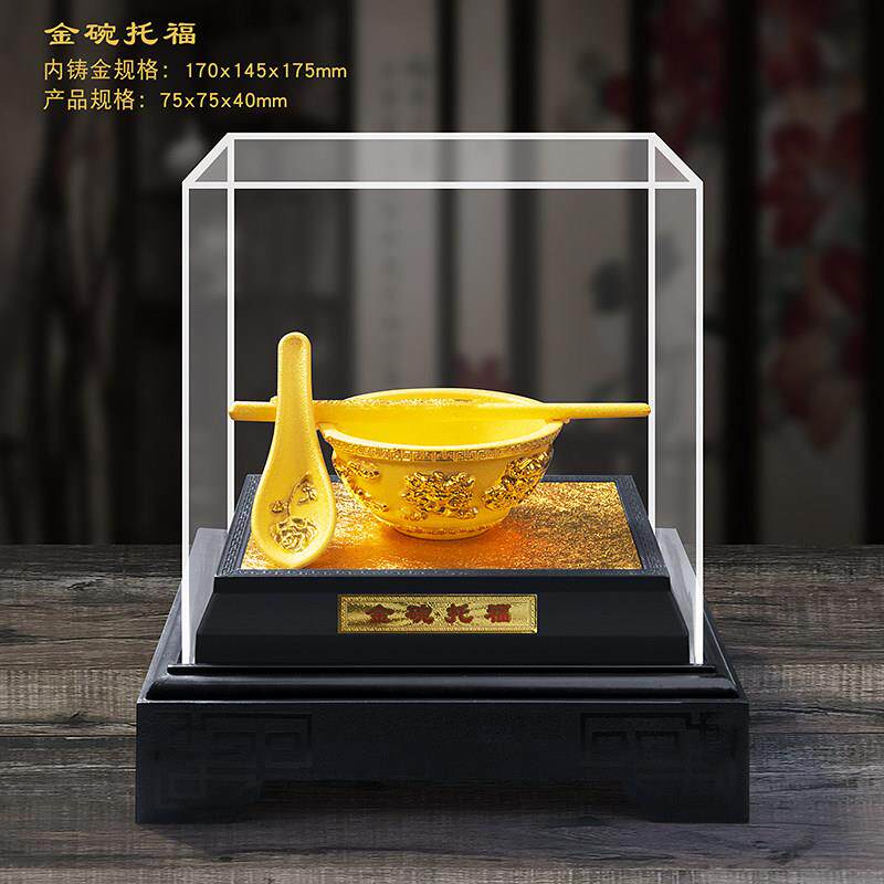 金碗托 托福绒沙金摆件 金碗筷 工艺礼品摆饰 富贵金饭碗结婚婚庆