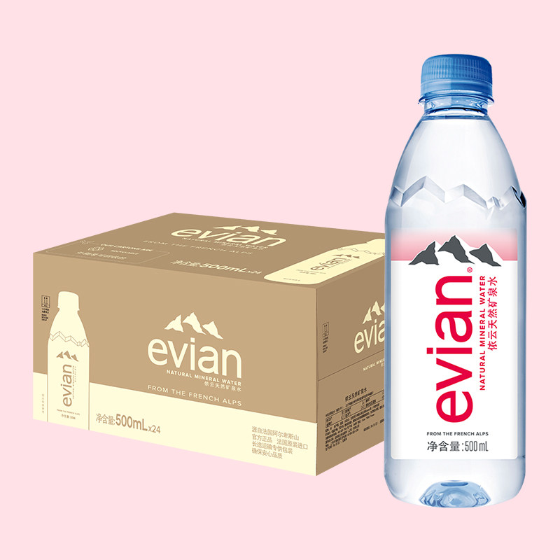 法国进口Evian/依云饮用天然矿泉水纯净水500ml*24*2箱高端硬瓶版