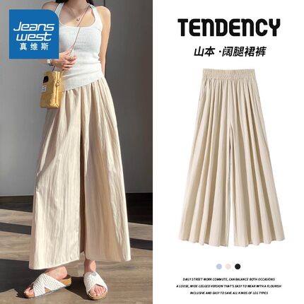 KWV真维斯卡其色裤子裙裤女2025新款阔腿休闲裤夏日轻薄裤子裤裙