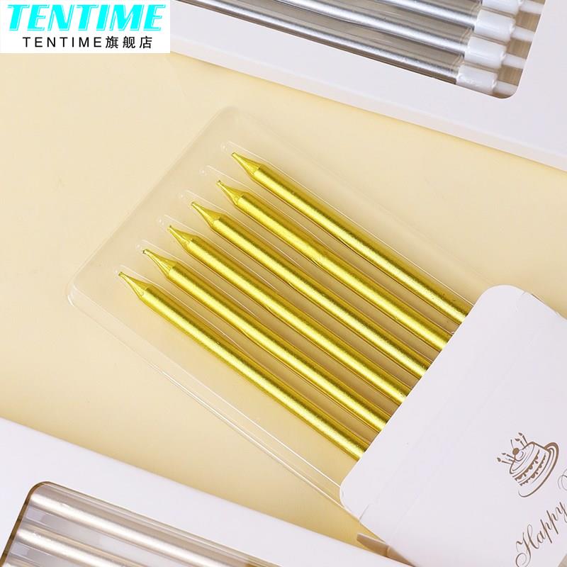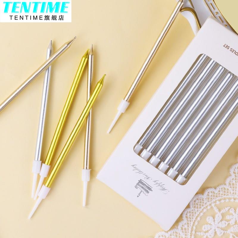 生日蛋糕蜡烛长杆铅笔创意复古浪漫烘焙聚会派对直杆金色银色蜡烛