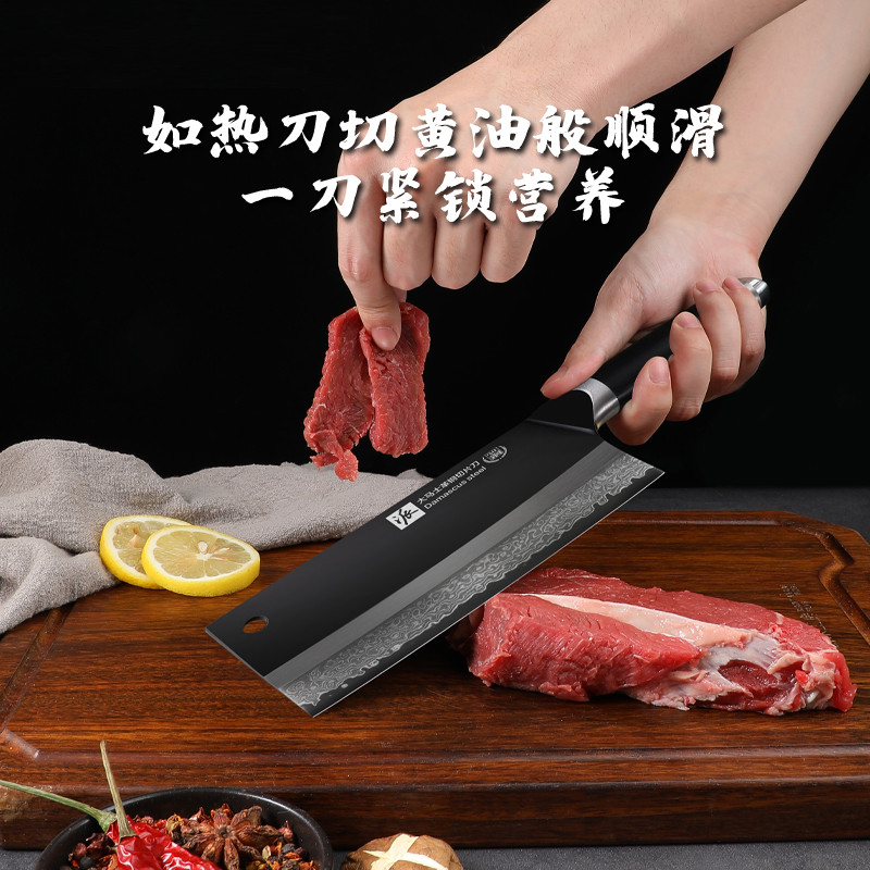 菜刀家用第一名锋利全套组合菜刀三件套大马士革钢切片刀厨师刀具