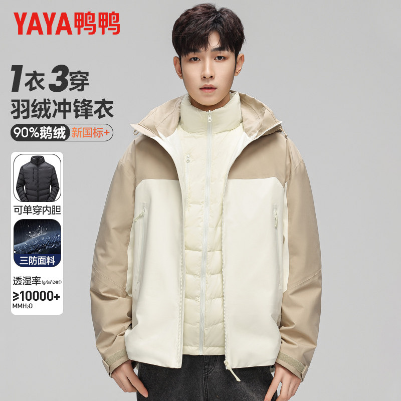 【鹅绒+一衣三穿】鸭鸭羽绒服男冬季可脱卸内胆户外冲锋衣外套男