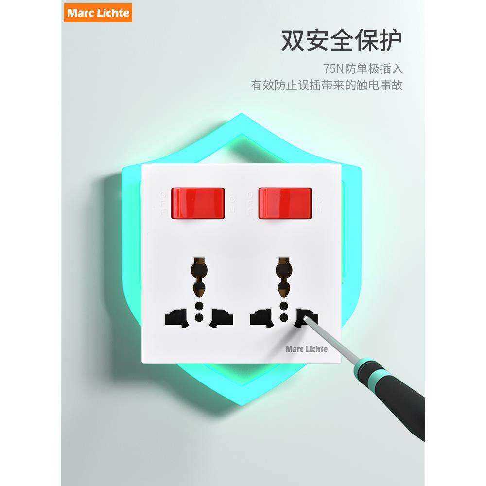 厨房专用家用86隐藏式两开六孔插座,开关6眼两孔三孔独立控制面