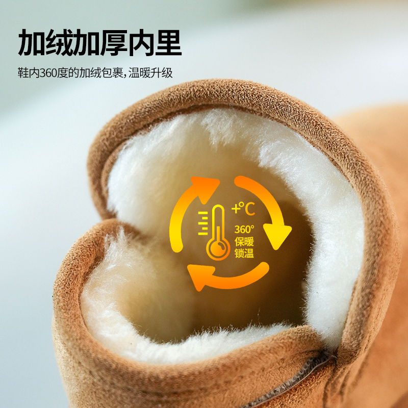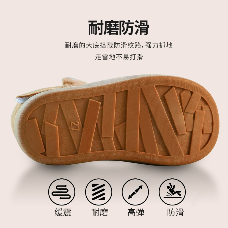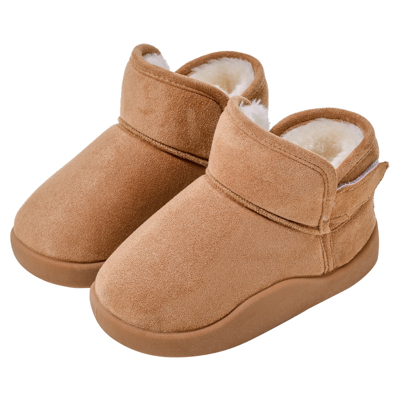 加绒雪地靴宝宝冬季外穿厚底皮毛一体简约短筒靴子男女儿童棉鞋