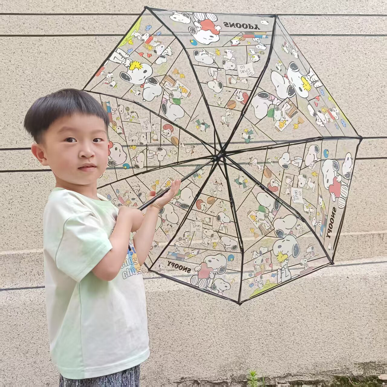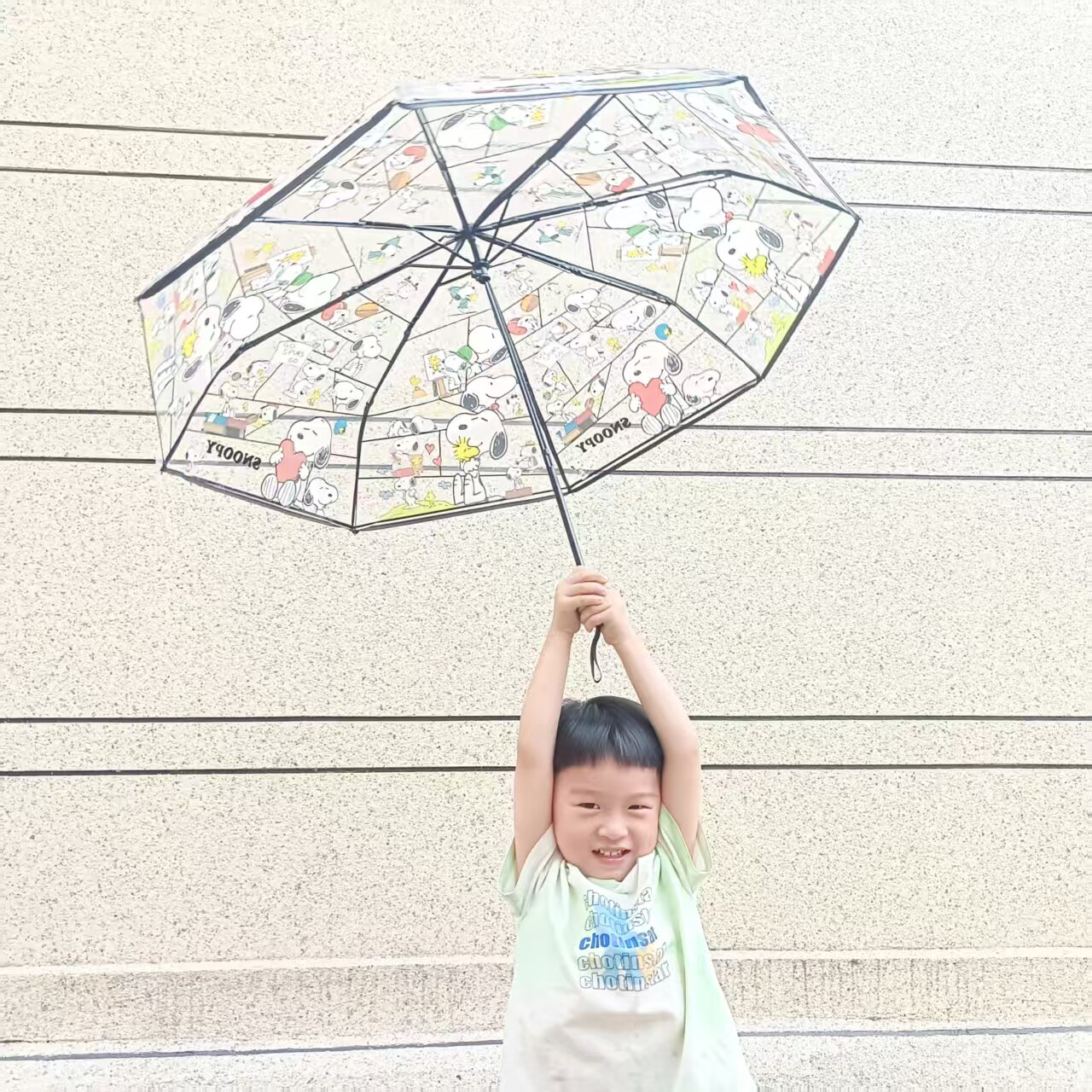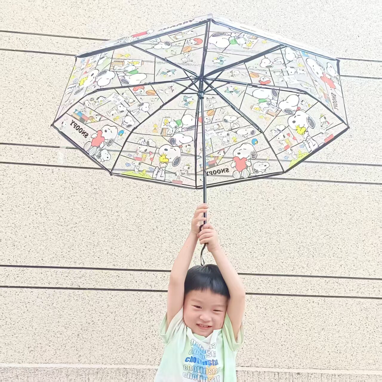 透明史努比雨伞男三折伞全自动网红直柄伞可爱折叠儿童成人动漫女