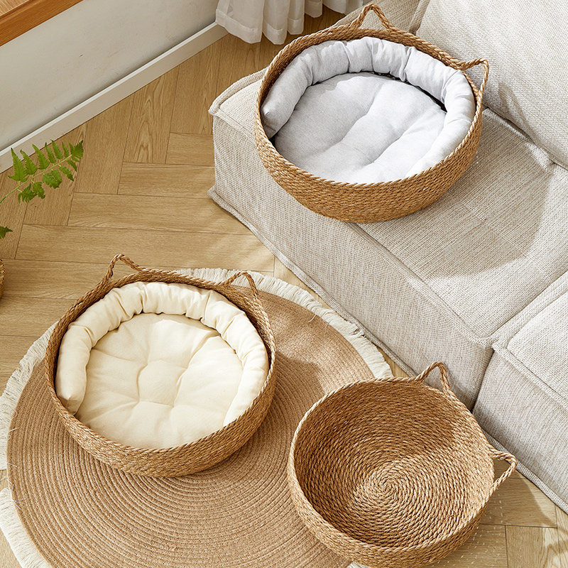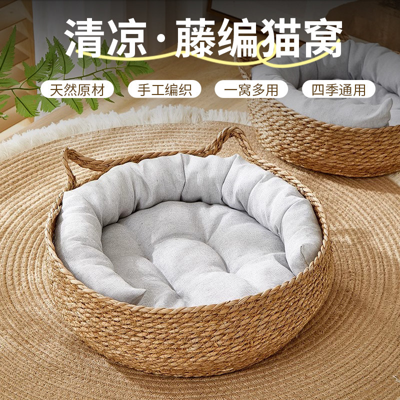 猫窝冬季四季通用藤编可拆洗草编宠物床冬季保暖床边猫咪睡觉的窝