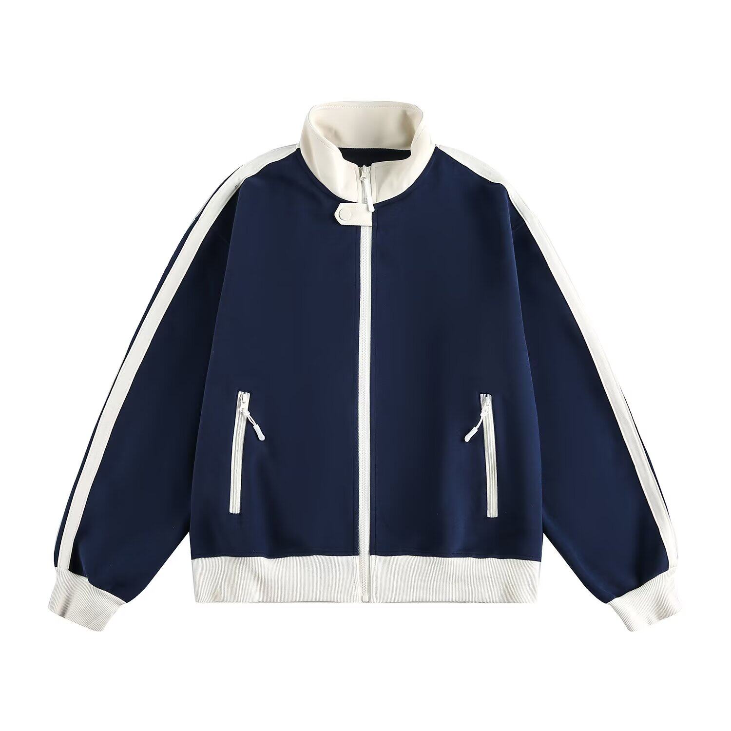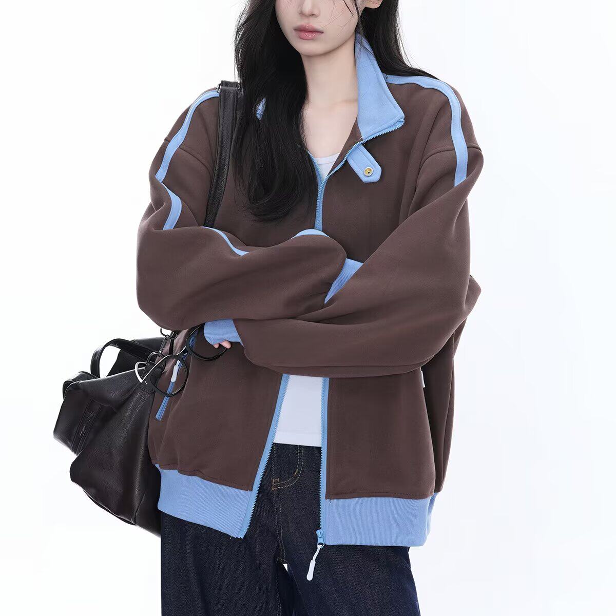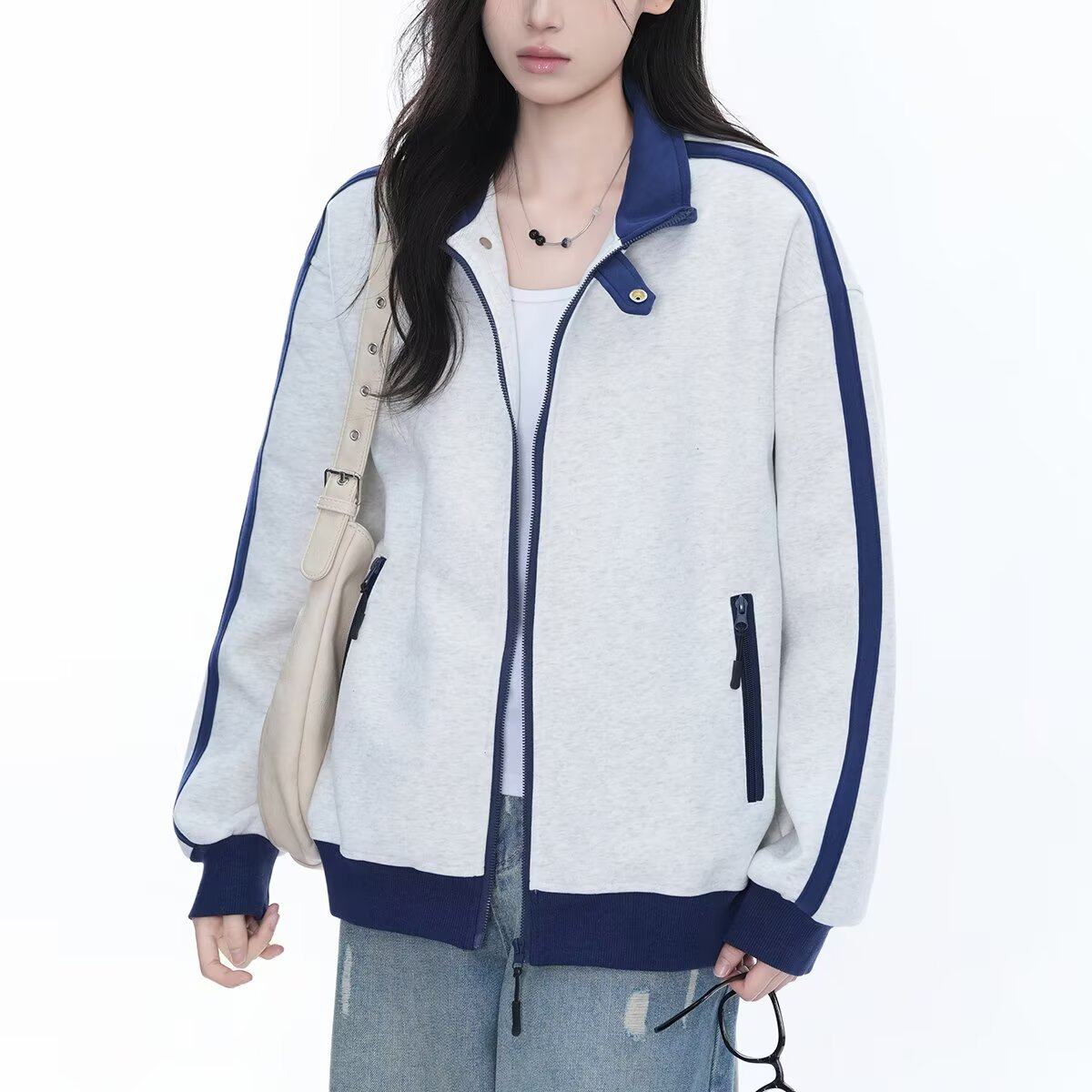 学院风拼接撞色立领卫衣女春秋新款宽松休闲百搭运动潮牌开衫外套
