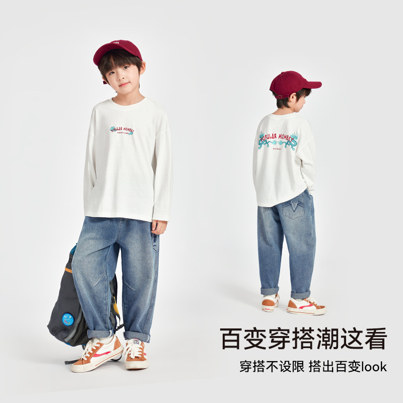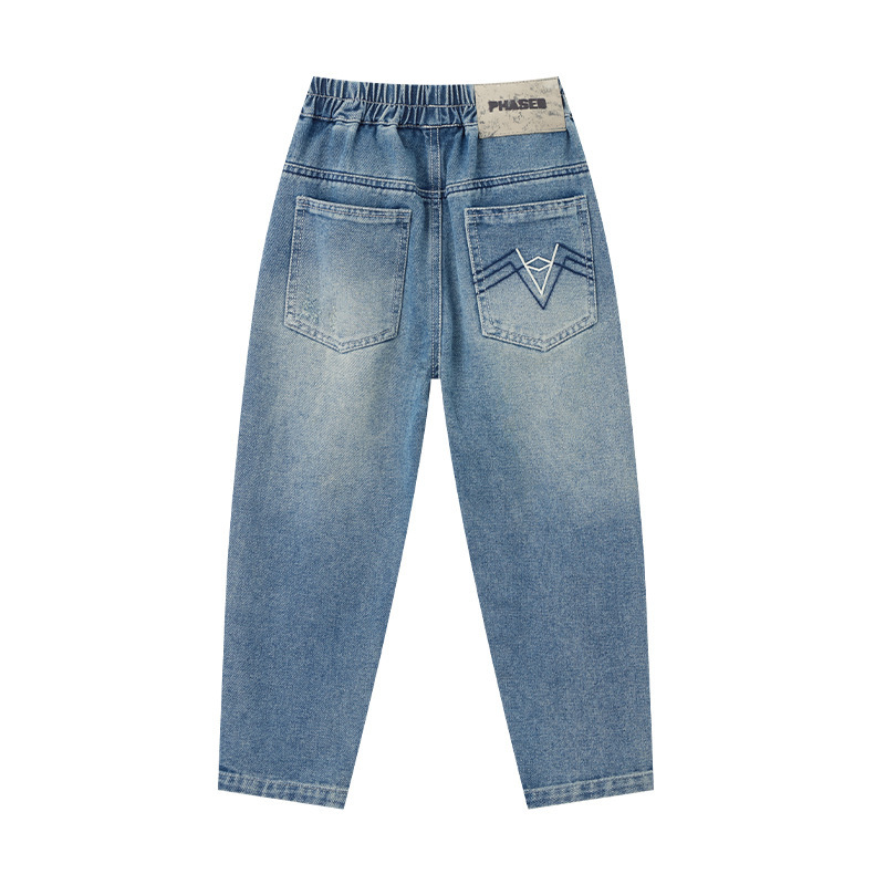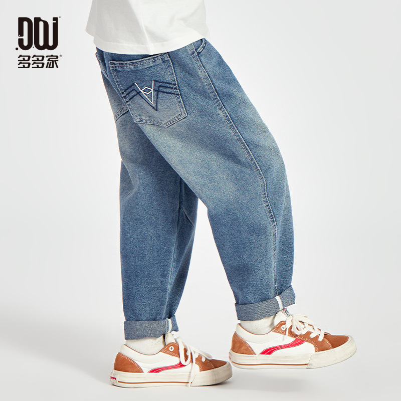 多多家男童牛仔裤春秋季儿童线刺绣长裤中大童休闲时尚男孩童装