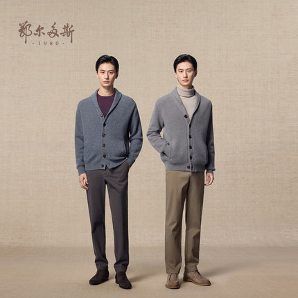 鄂尔多斯1980 男装青果领翻花羊绒衫25秋冬新品加厚保暖针织衫