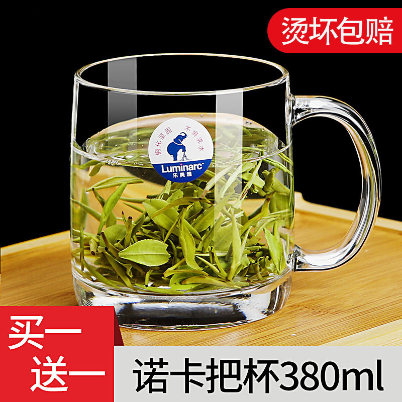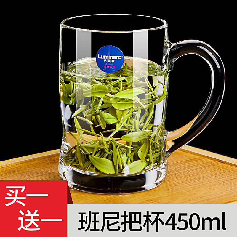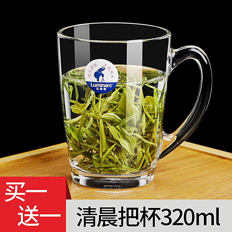 乐美雅玻璃杯家用茶杯带把水杯耐热泡茶杯钢化加厚杯喝水把杯