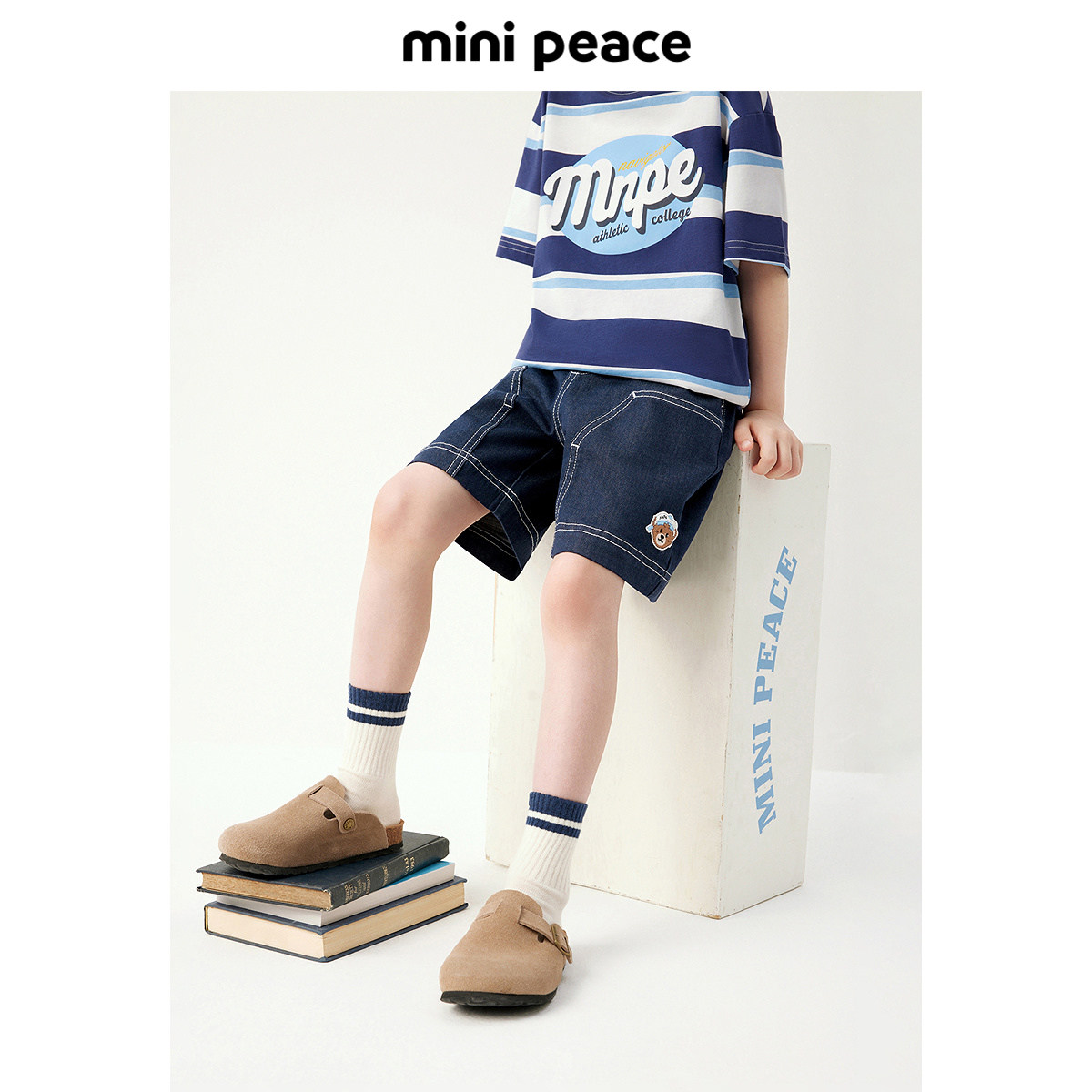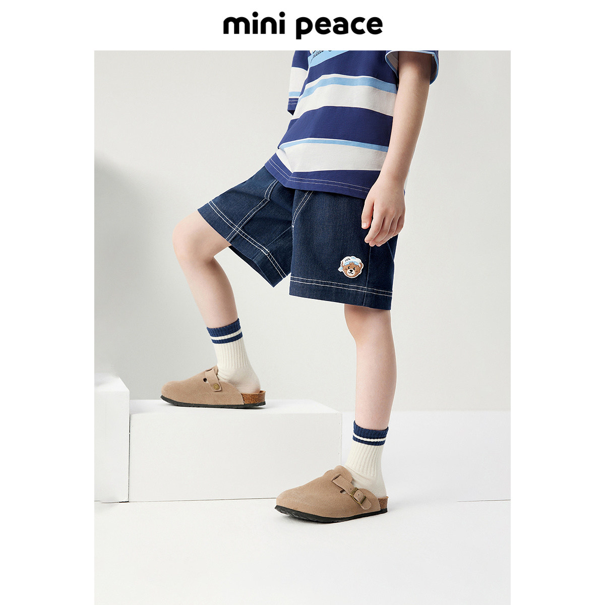 MINIPEACE太平鸟童装男童短裤夏季明线小熊儿童牛仔五分裤宝宝裤