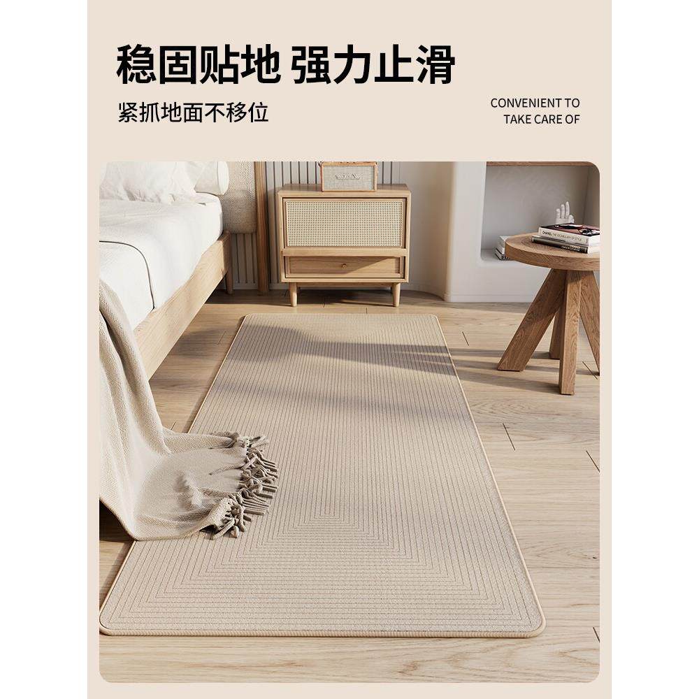 Wabi-Sabi风格主卧室床边毯子2024新房间客厅条形地毯床边隔音地