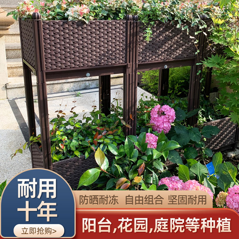 花盆加高种植箱花槽室外双层户外阳台花箱庭院长方形立体架高菜盆
