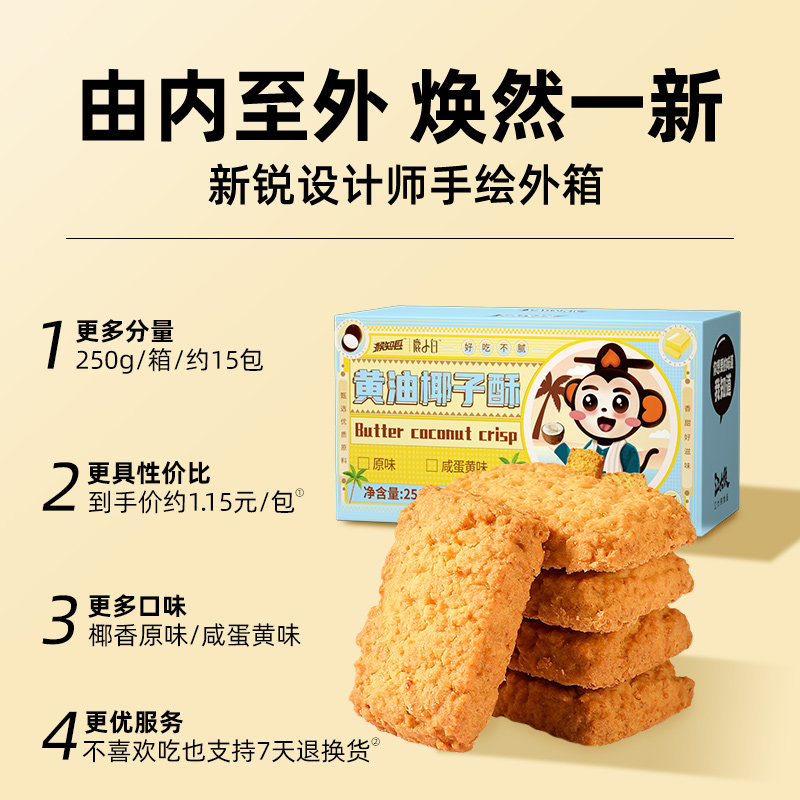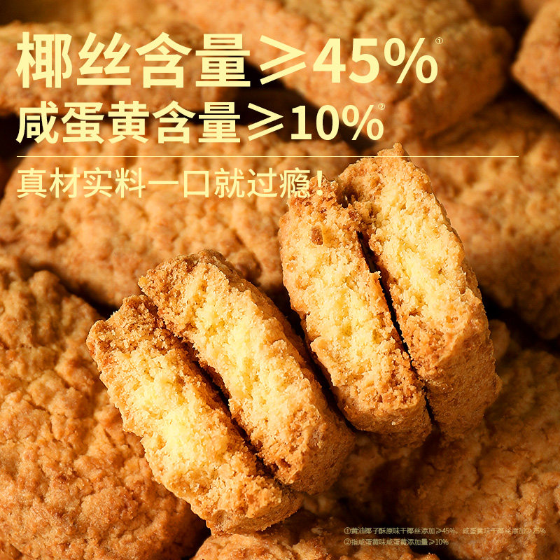 黄油椰子酥饼干椰蓉曲奇咸蛋黄网红零食品小吃早餐特产糕点心早餐