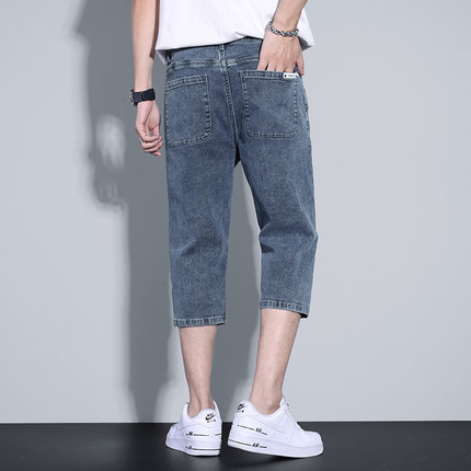 夏季薄款男士牛仔短裤男弹力休闲牛仔裤子男宽松直筒马裤七分中裤