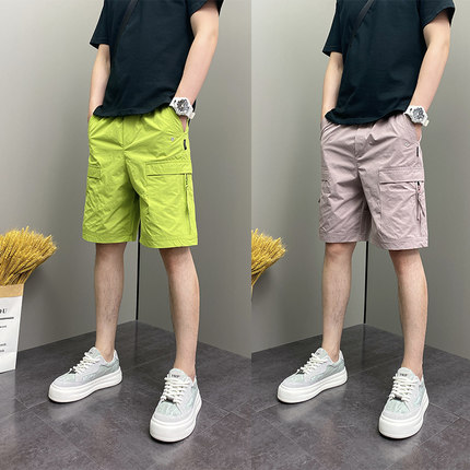夏季薄款百搭时尚休闲直筒裤透气短裤男士工装裤潮流宽松五分裤子