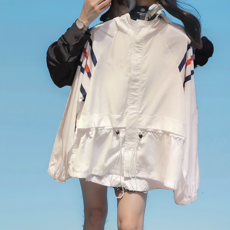 欧货时尚新款防晒衣女外套薄款冲锋衣夏季宽松显瘦连帽百搭夹克