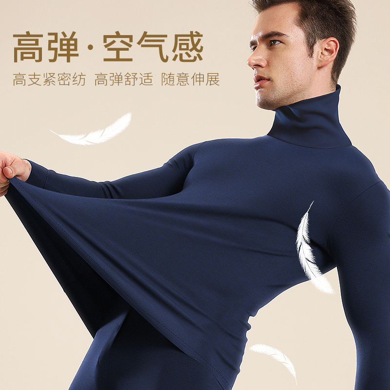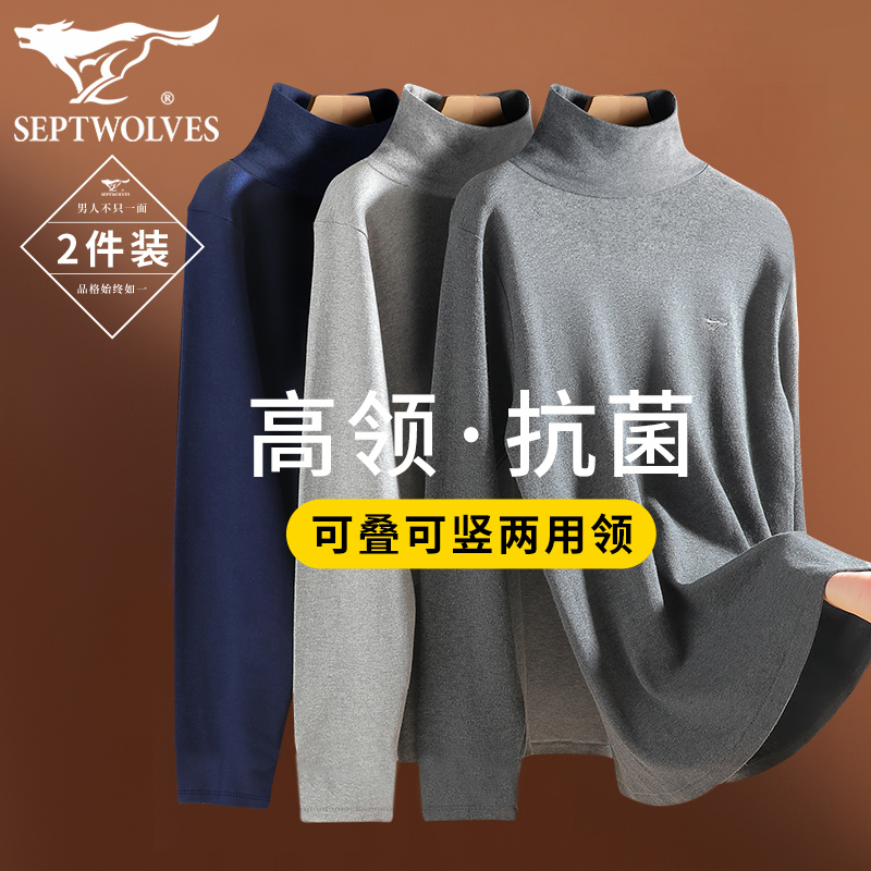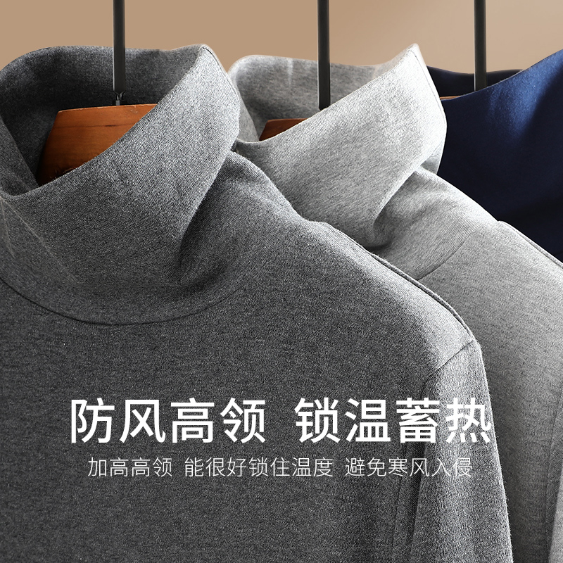 七匹狼纯棉秋衣上衣男士中高领保暖内衣秋冬季防寒打底内穿薄线衣