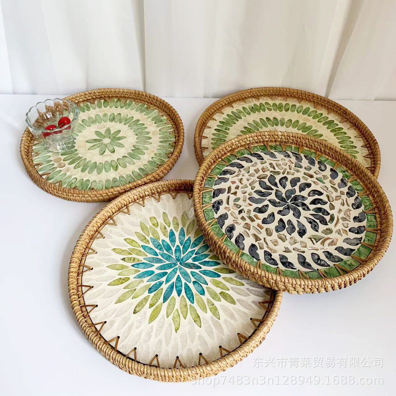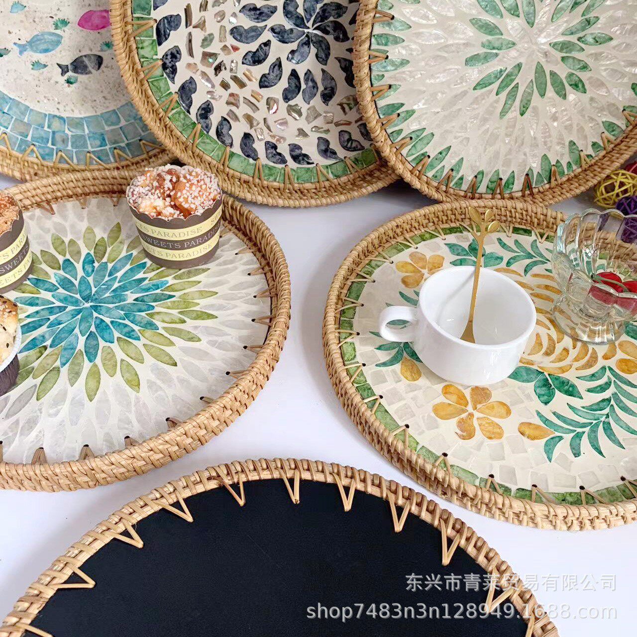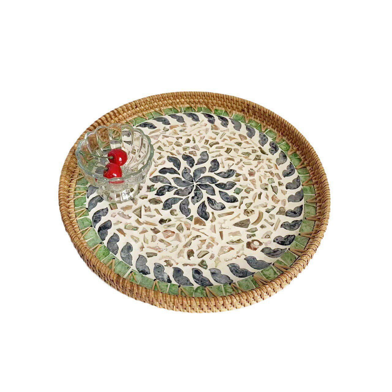 天然藤编手工贝壳托盘北欧创意彩