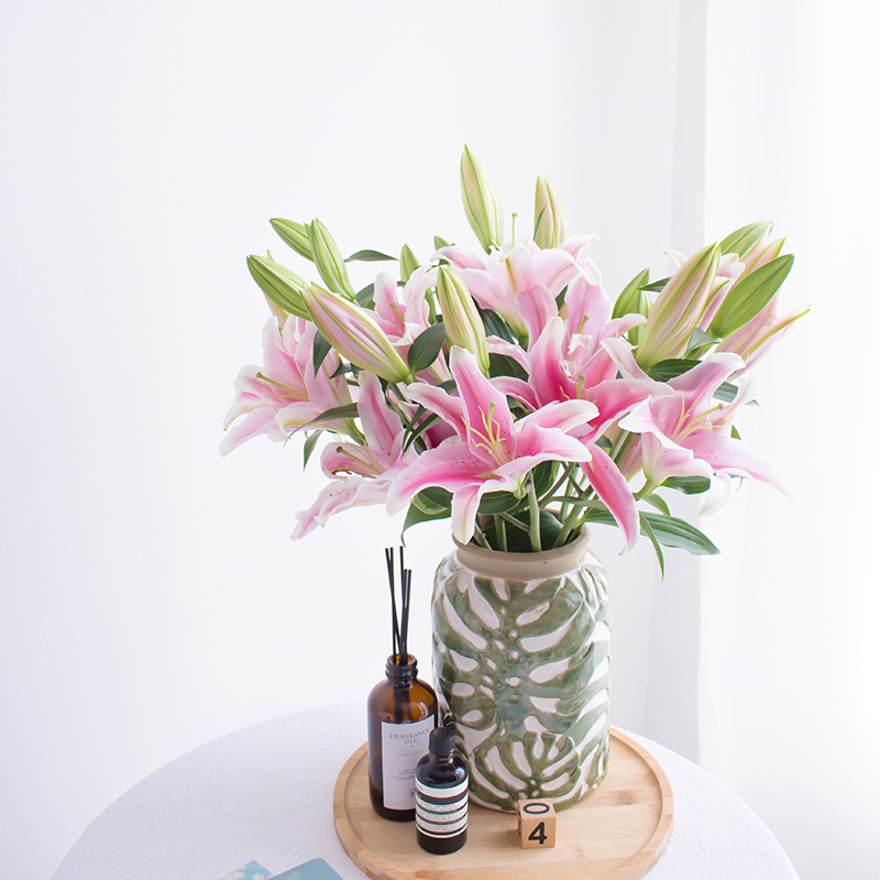 a级香水百合花鲜花云南基地直发粉色索尔邦百合鲜切花带花苞插花