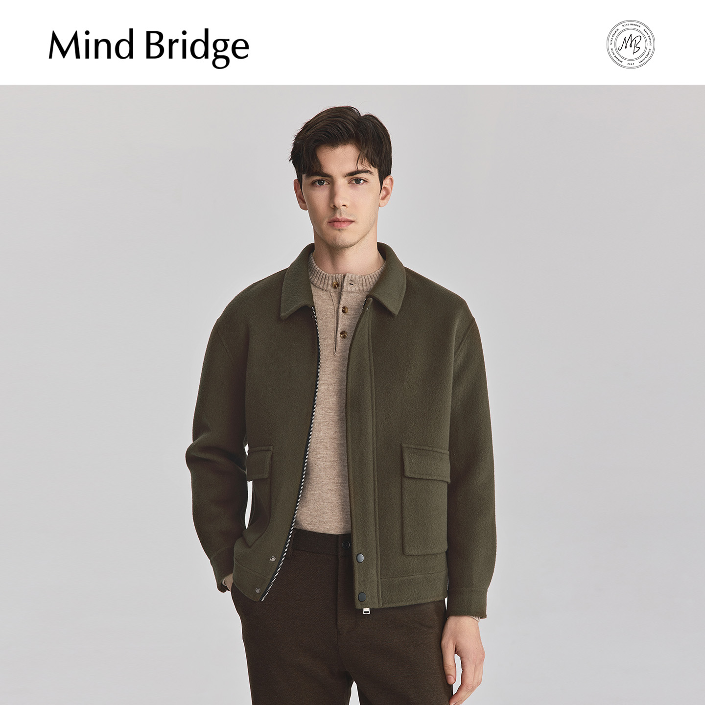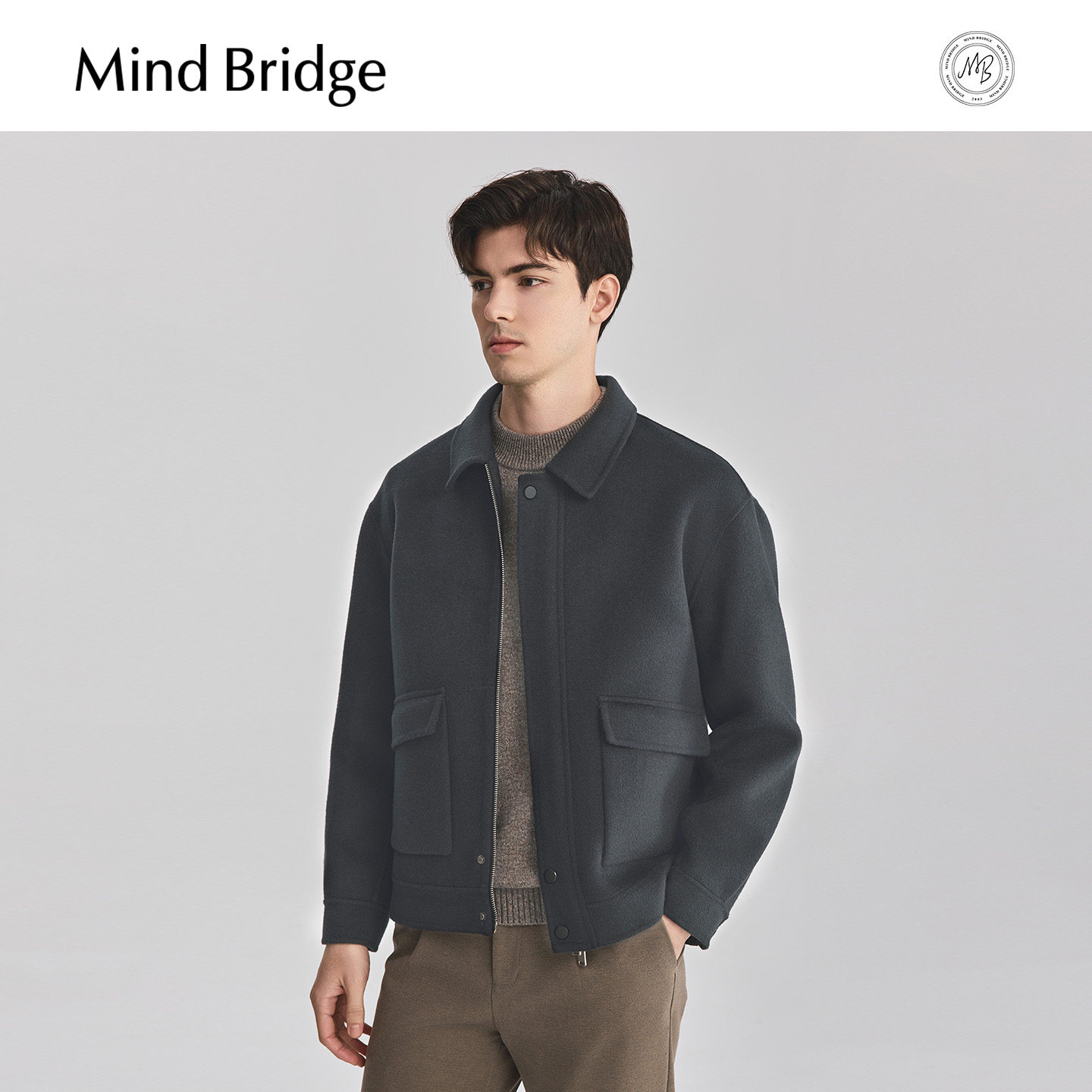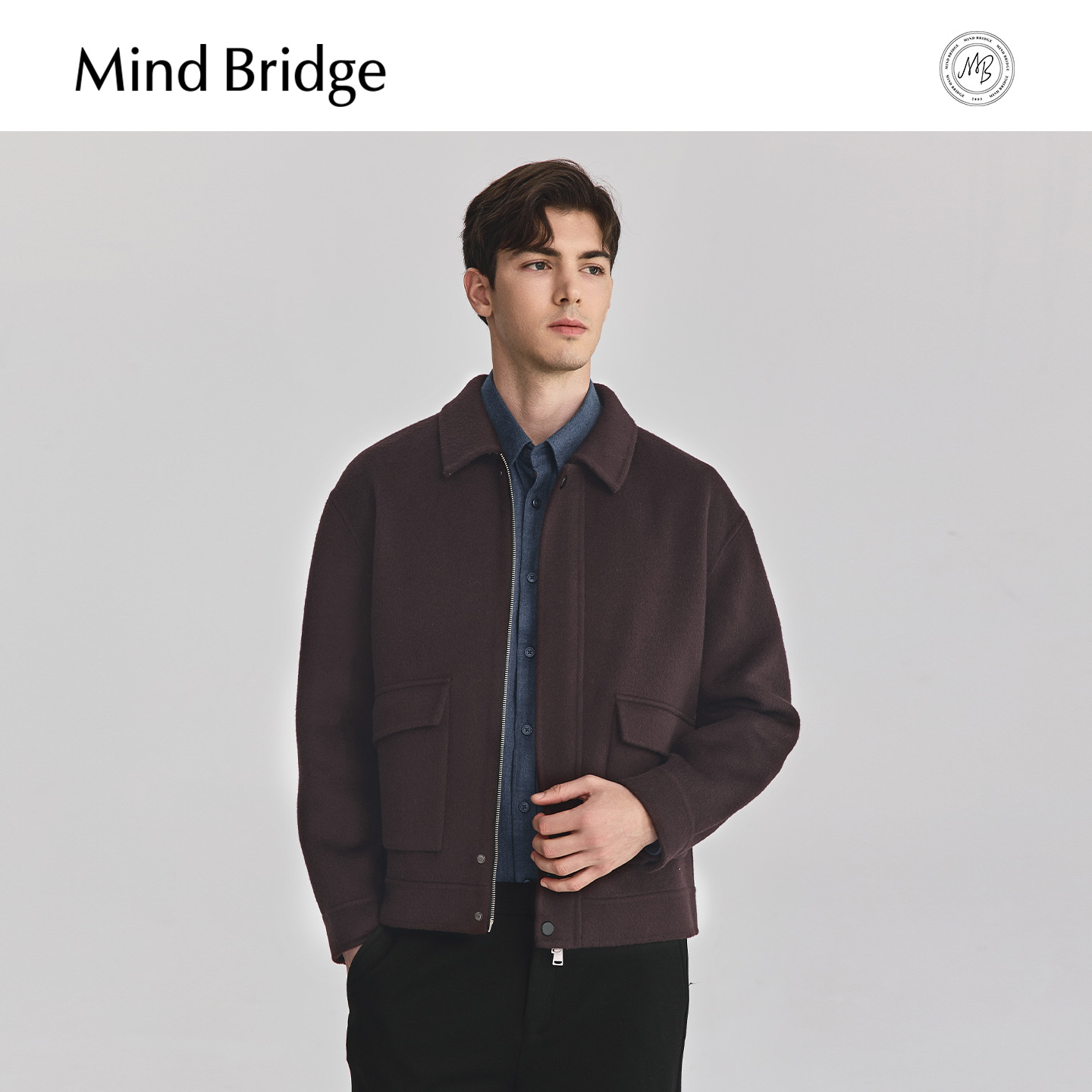 Mind Bridge男士纯色短款翻领毛呢大衣2025年冬复古休闲羊毛外套