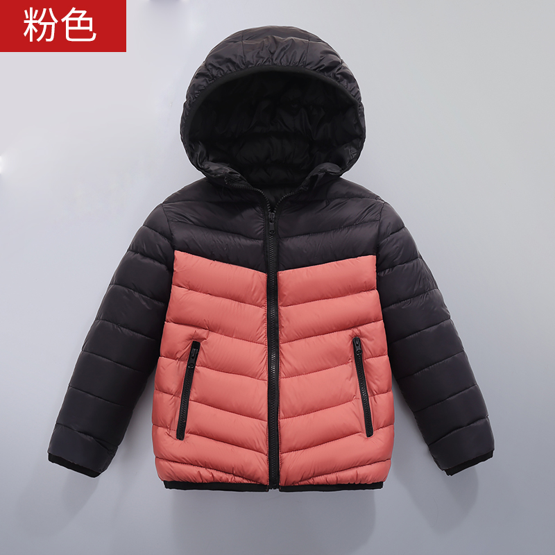 2025年秋冬轻薄款儿童羽绒棉服拼色中大童男童女童连帽保暖外套