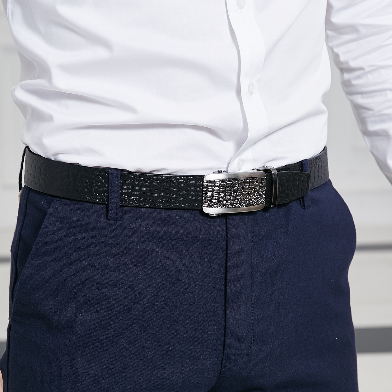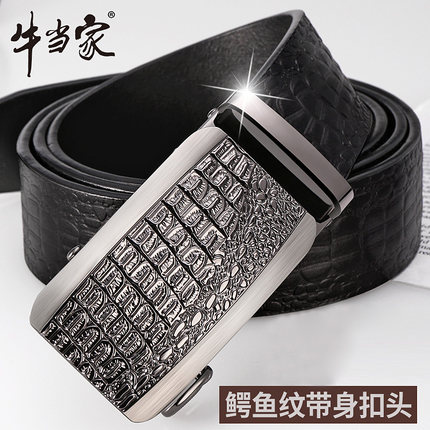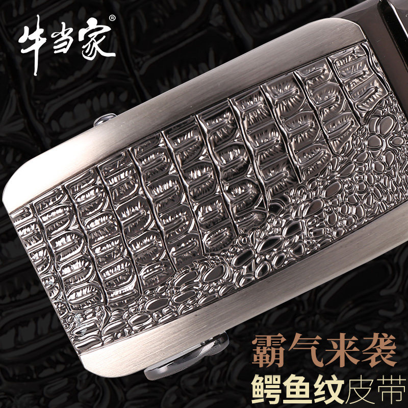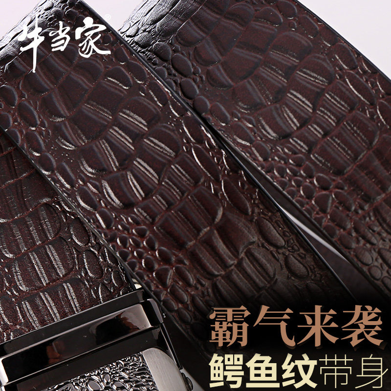 牛当家男士皮带真皮自动扣鳄鱼牛皮腰带男自动商务青年中年裤带潮