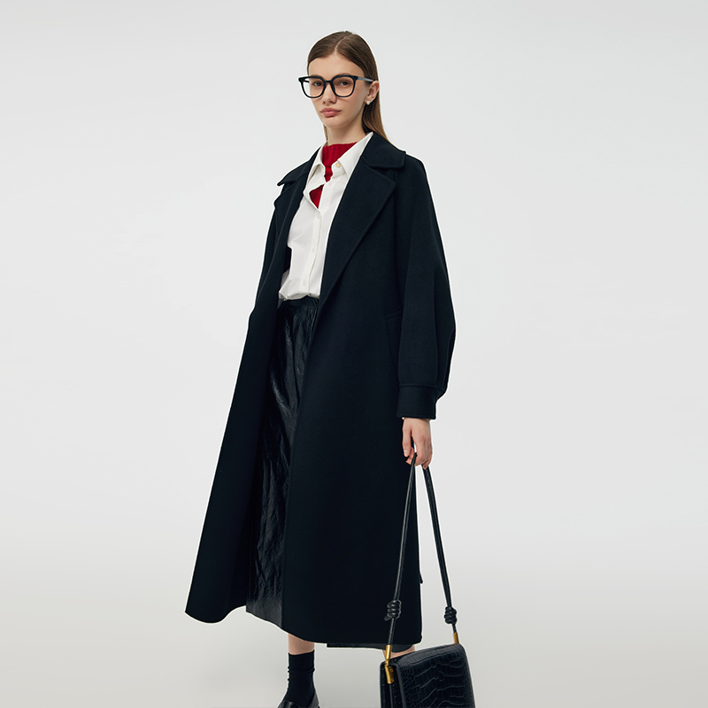 歌莉娅冬季羊毛羊绒时尚廓形感双面呢大衣配送本布腰带1CSC6N850