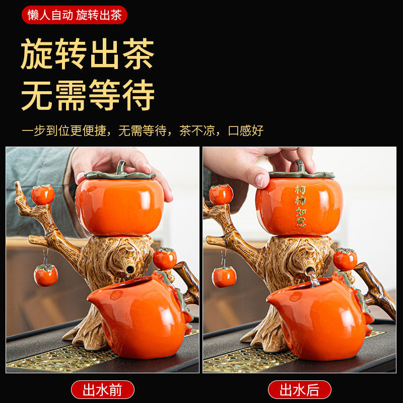 柿柿如意懒人泡茶器网红自动茶具套装家用轻奢高档茶壶茶杯礼盒装