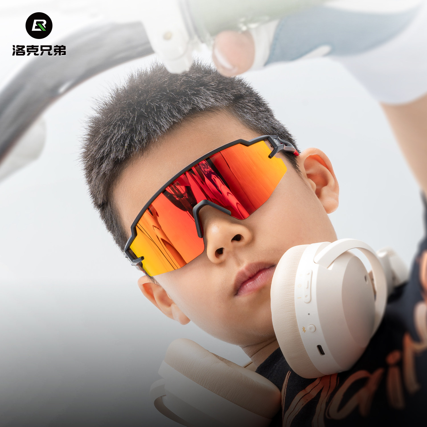 洛克兄弟儿童骑行眼镜偏光防风沙青少年男户外运动自行车跑步护眼