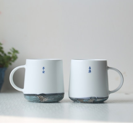 子木喜乐平安文字陶瓷水杯马克杯咖啡杯景德镇定制结婚生日伴手礼