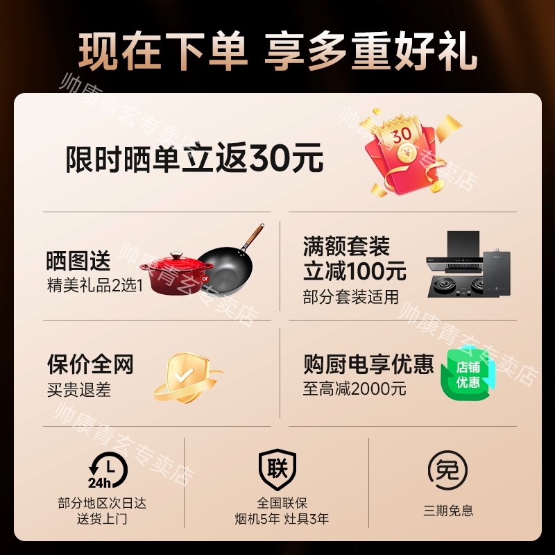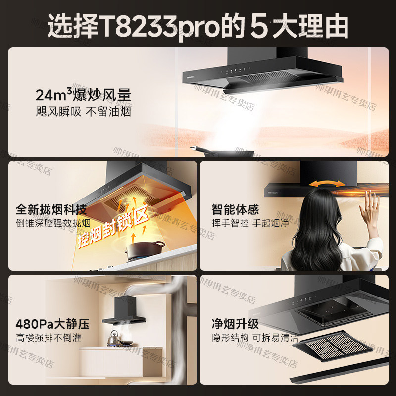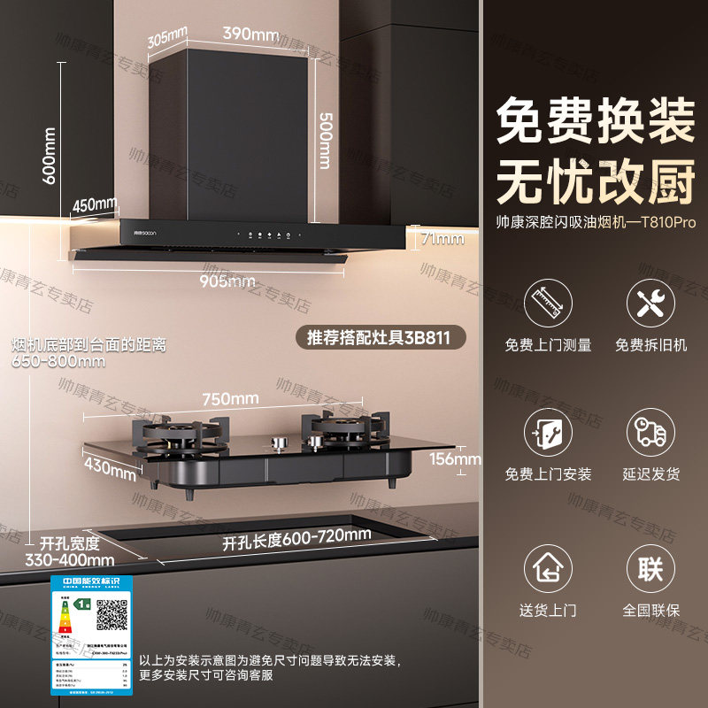 帅康T810欧式大吸力抽油烟机燃气灶套装家用顶吸烟机换新补贴官方