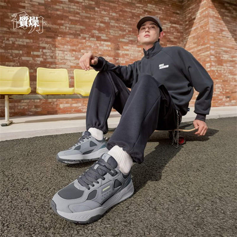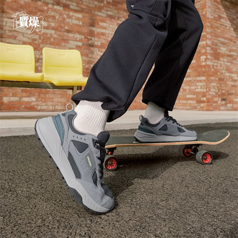 尧光|乔丹皮面防水休闲鞋男鞋2025秋冬新款灰黑软底男运动鞋子潮