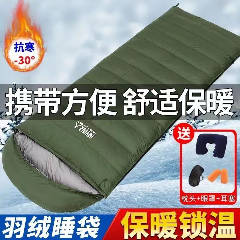 南极人羽绒睡袋冬季加厚户外大人单人露营便捷式成人防寒四季保暖