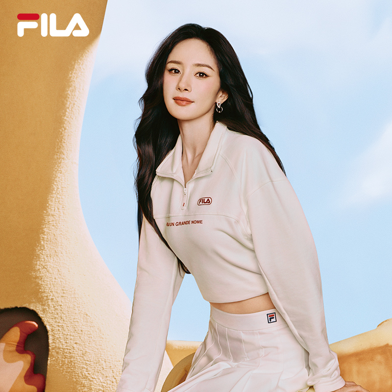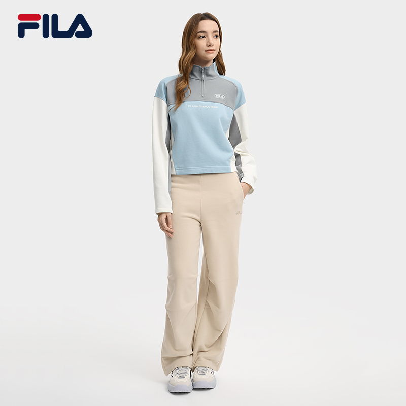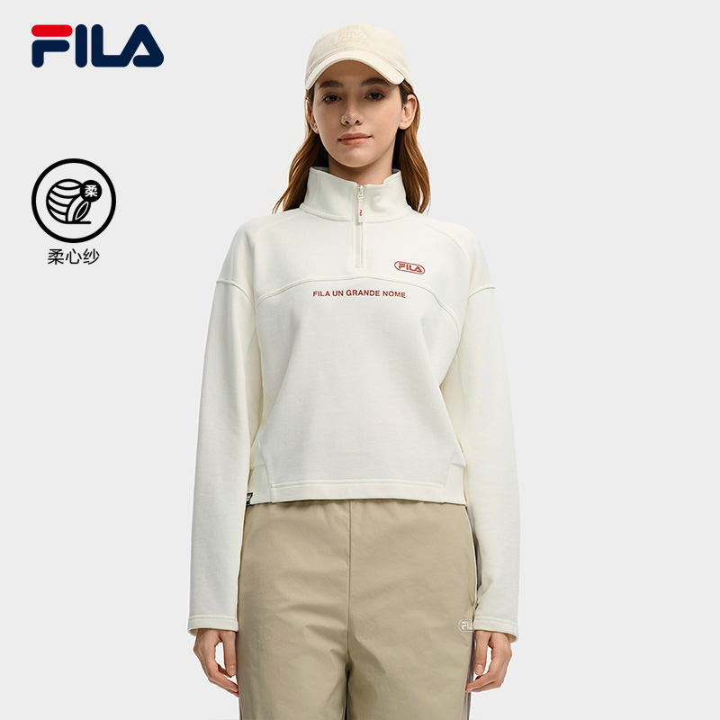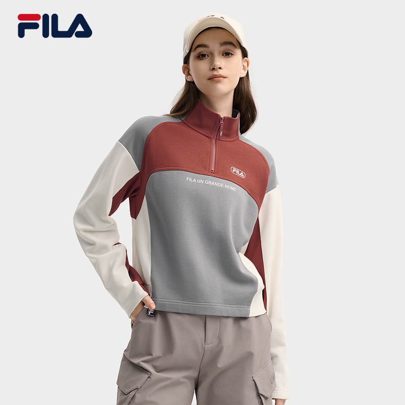 杨幂同款FILA斐乐官方女子套头卫衣2025冬新款拼色针织长袖上衣