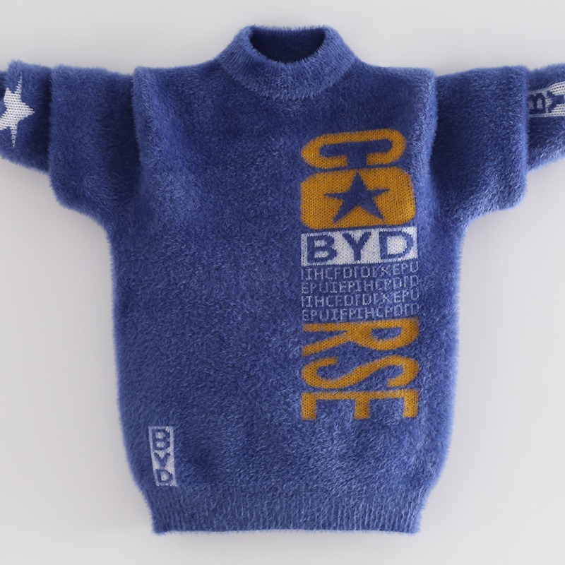 男童毛衣2025秋冬新款中大童加厚套头字母水貂绒针织衫儿童打底衫