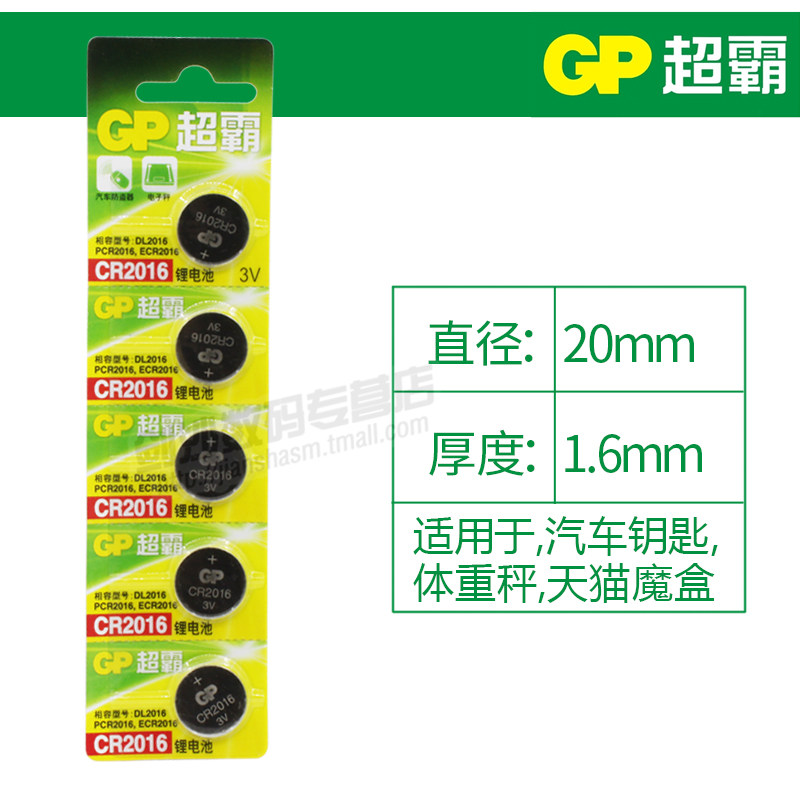 GP超霸CR2016纽扣电池丰田皇冠锐志凯美瑞卡罗拉威驰RAV4汽车遥控锂电子铁将军摩托电动车汽车遥控器钮扣圆