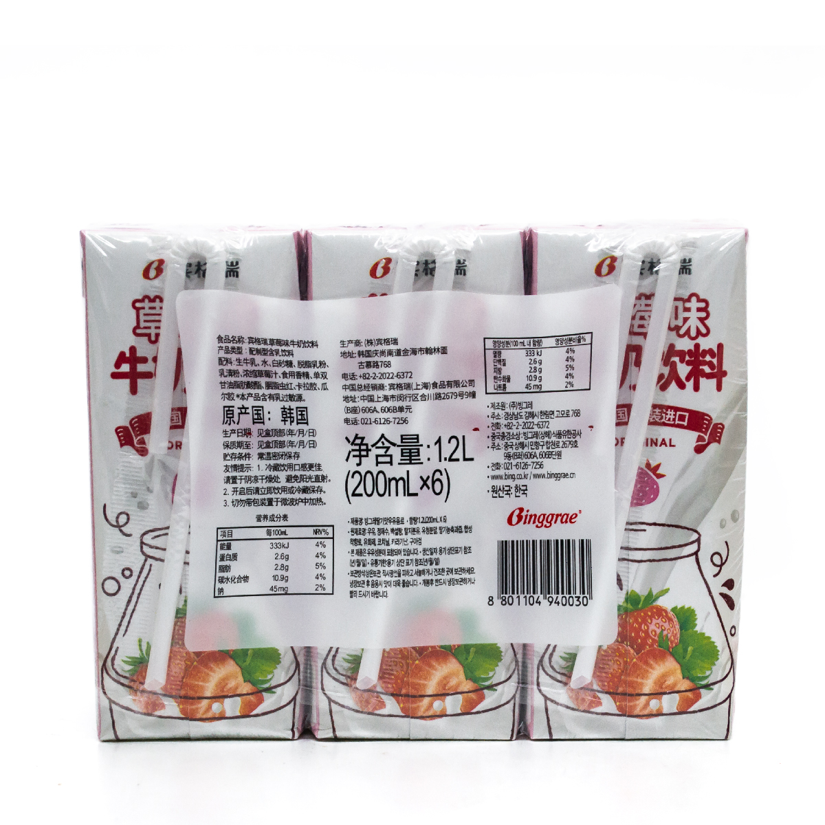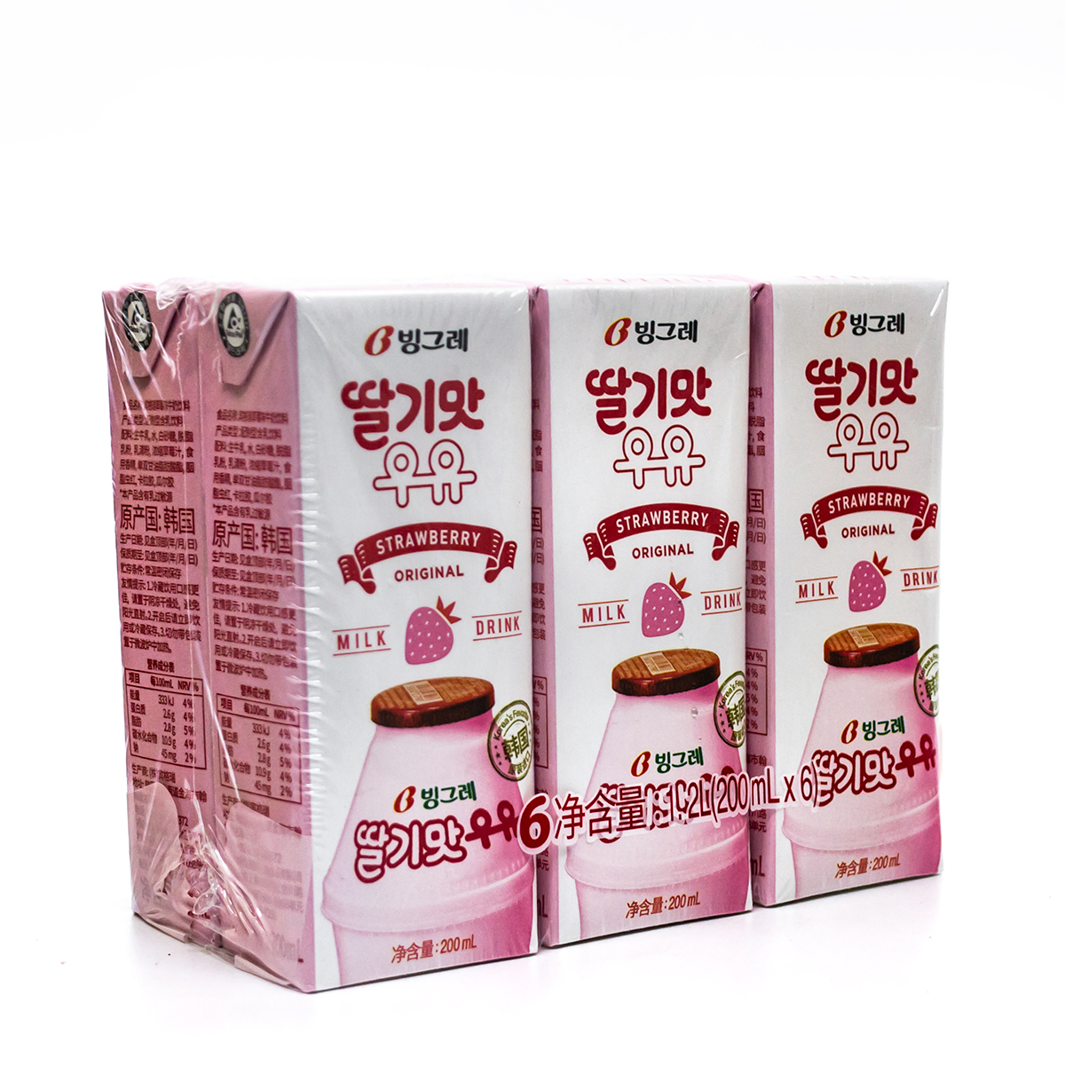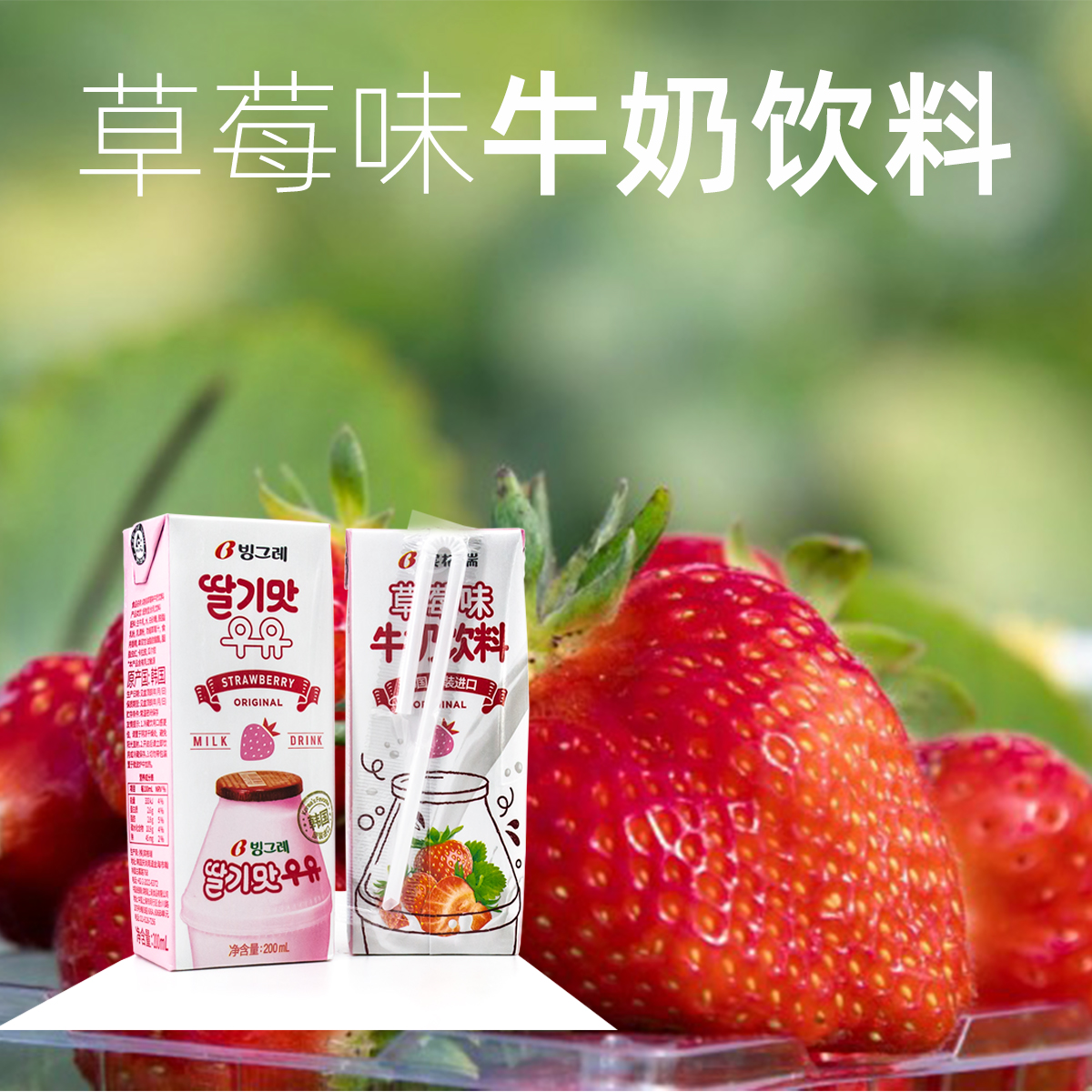 韩国进口果味牛奶饮料宾格瑞香蕉草莓哈密瓜味牛奶饮料