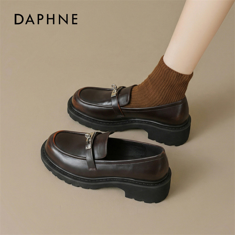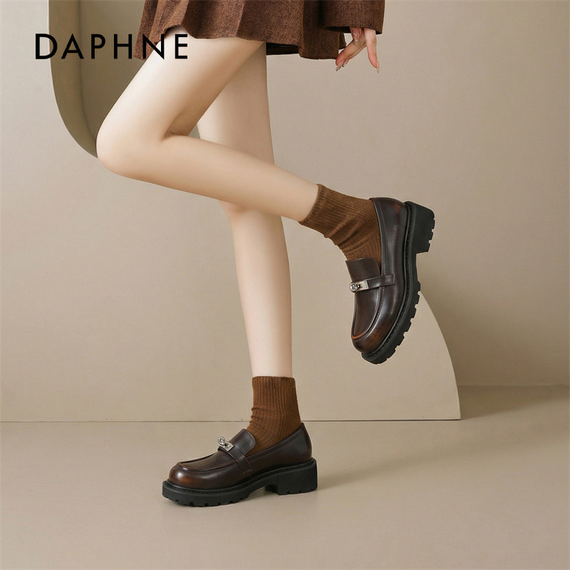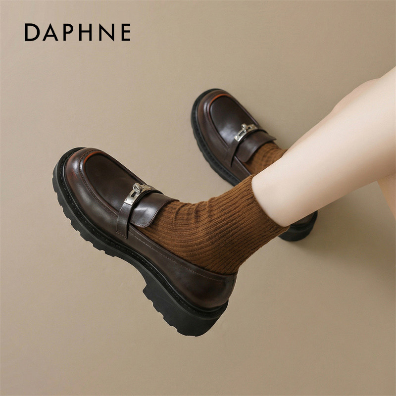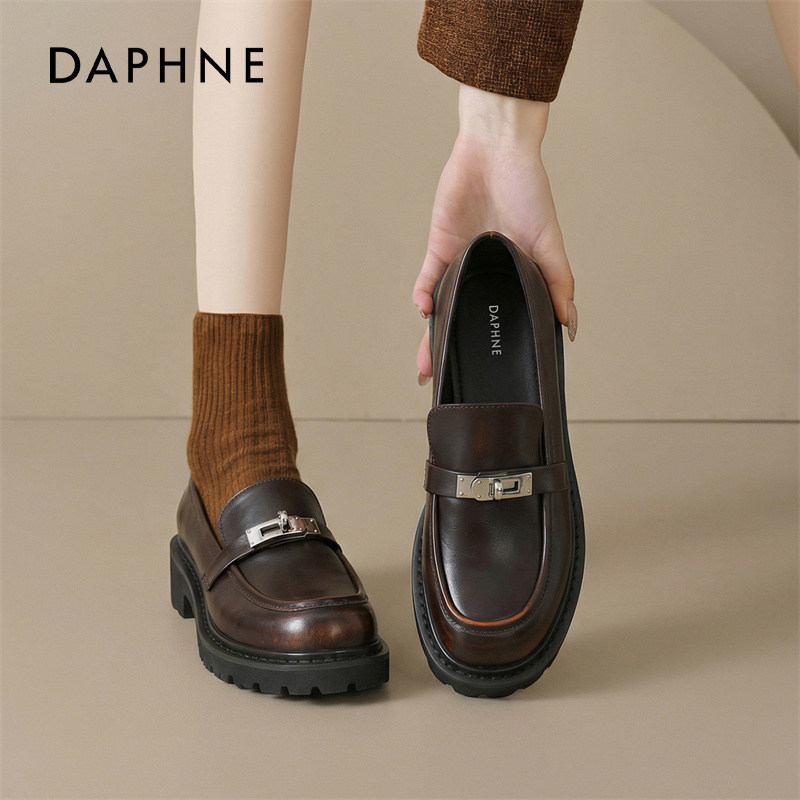 达芙妮棕色乐福鞋女2026春季新款复古英伦风通勤单鞋配裙子小皮鞋