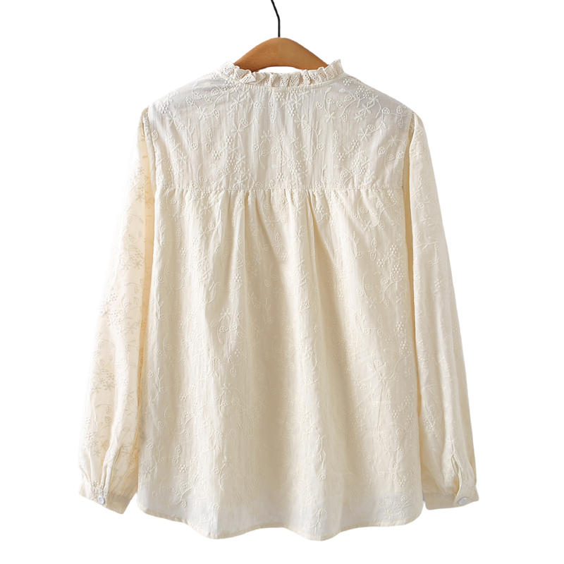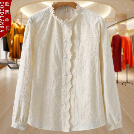 大码妈妈春装花边刺绣衬衣2025新款宽松洋气减龄立领女士长袖衬衫