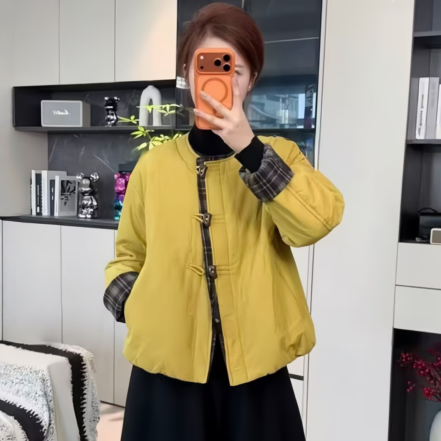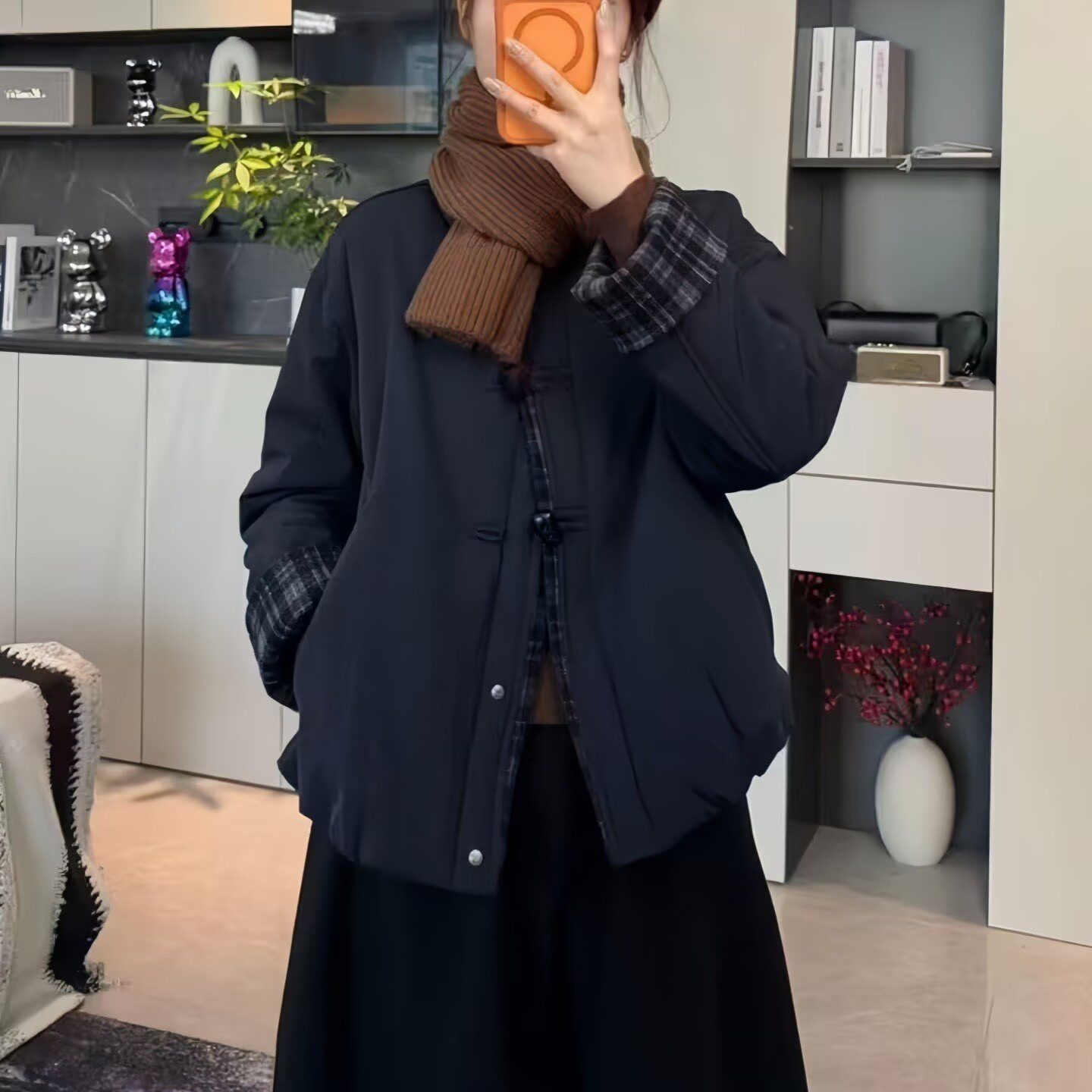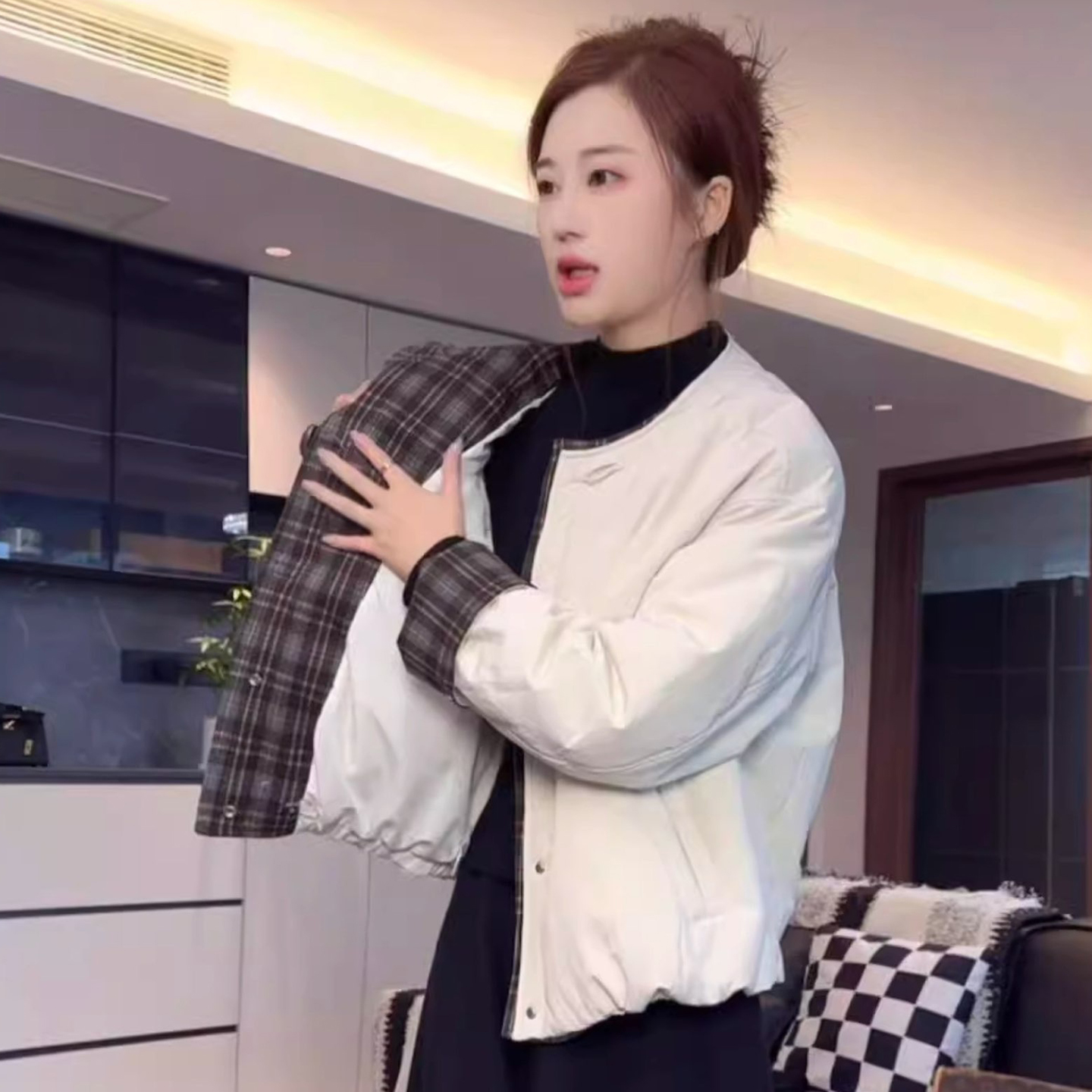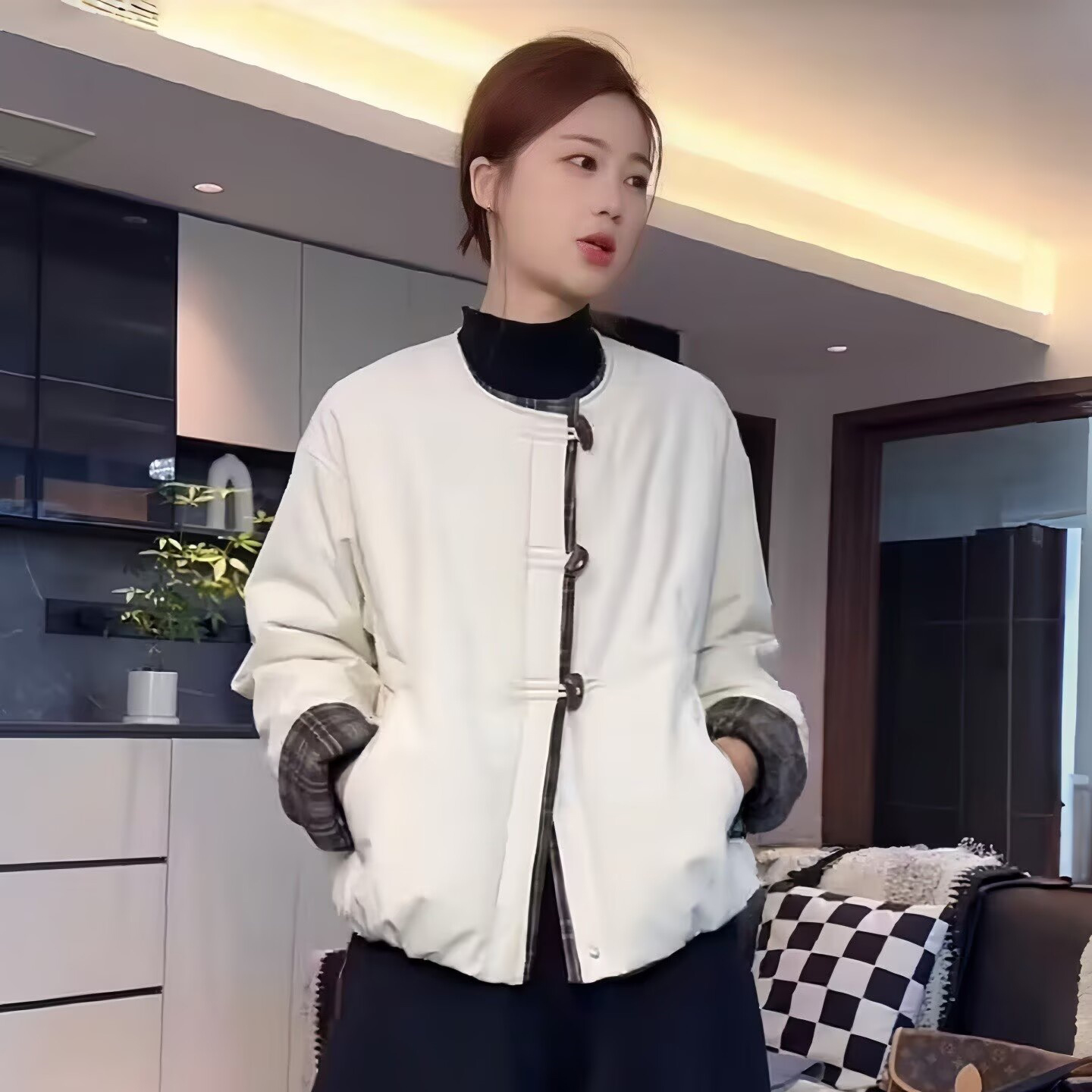 复古时尚格子拼接棉服外套女2025秋冬新款加厚保暖棉衣外套上衣潮