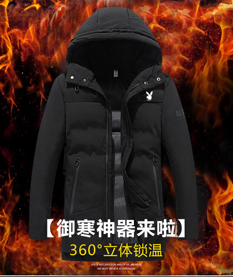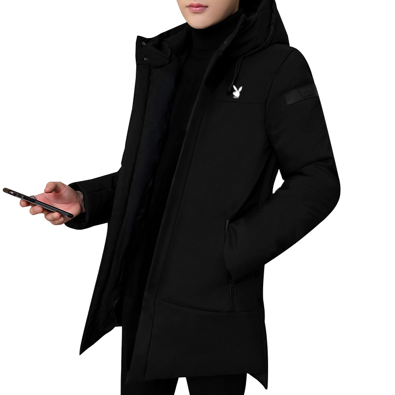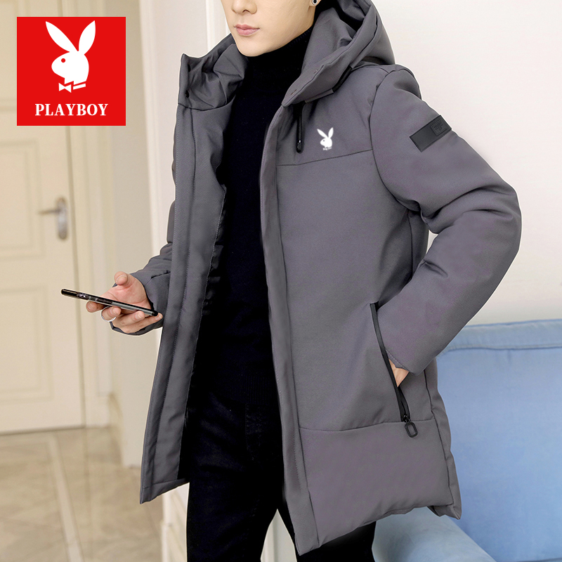 花花公子冬季连帽加厚中长款羽绒服男士潮牌2024年新款潮帅气外套
