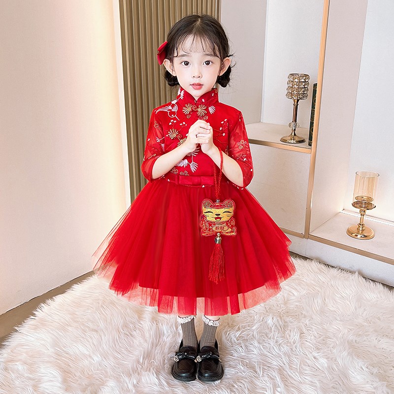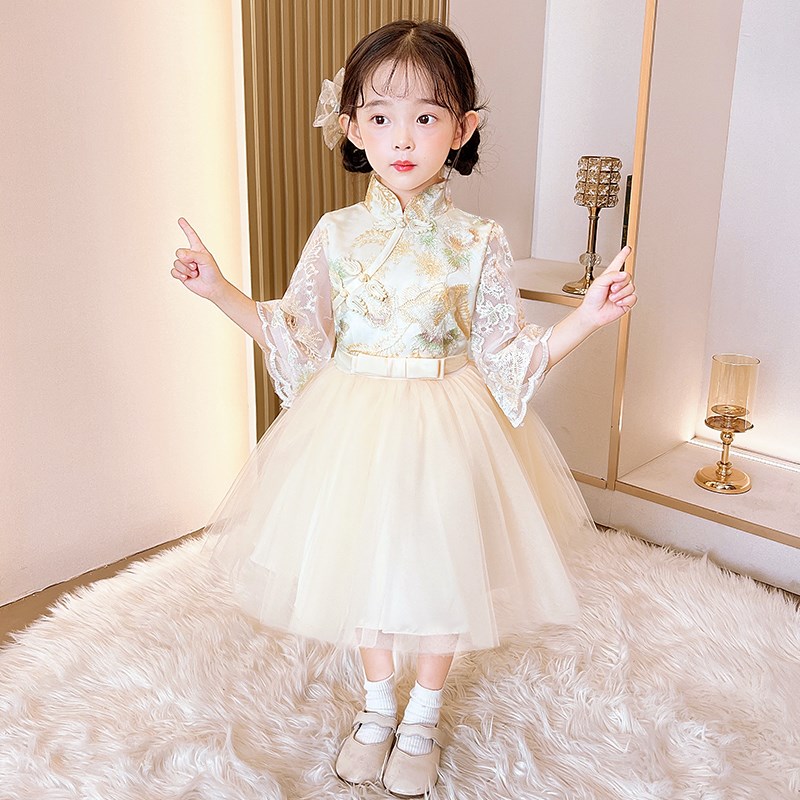 女童公主裙高端蓬蓬纱裙旗袍连衣裙中国风宝宝生日周岁礼服演出服