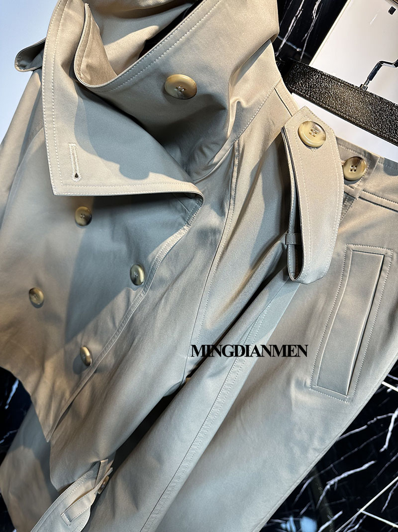 高级感卡其色大翻领短款风衣时尚半身裙2025春秋款轻奢气质套装
