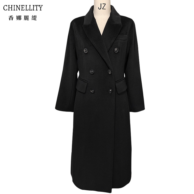 加厚羊绒大衣收腰带里衬保暖长款黑色白色驼高端毛呢外套冬新款女