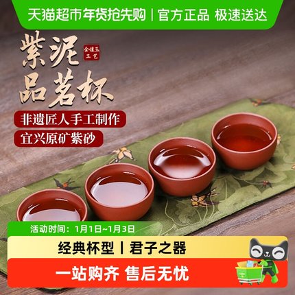 金镶玉紫砂茶杯手工制作宜兴原矿紫泥品茗杯个人主人杯泡茶具小杯
