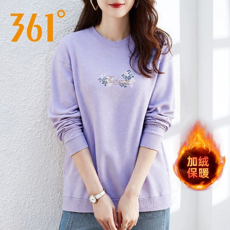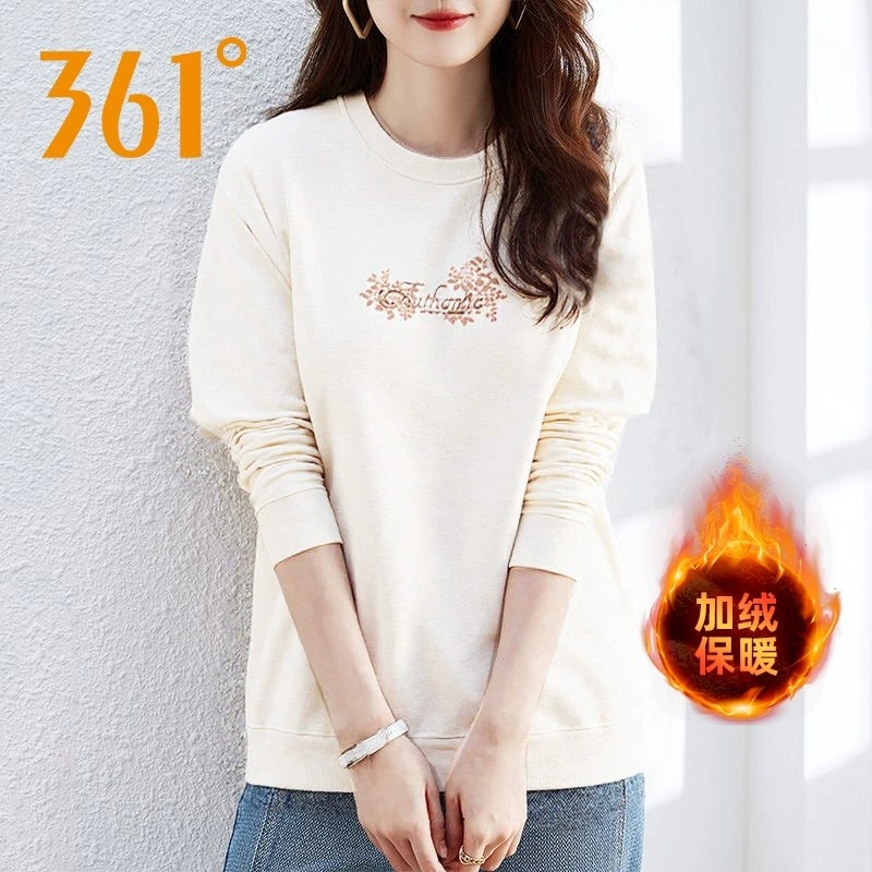 361度正品女士运动卫衣2025冬季新款绒里保暖长袖套头打底衫上衣