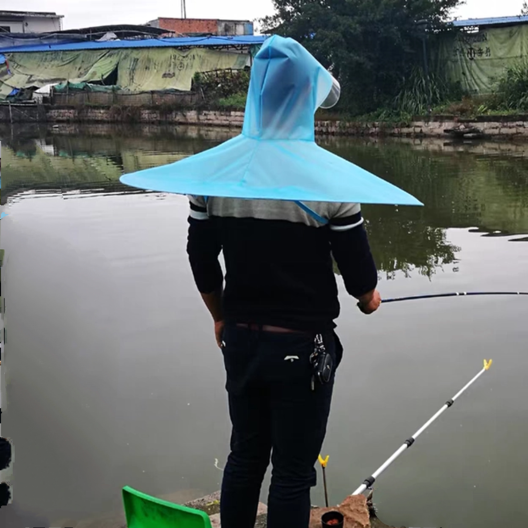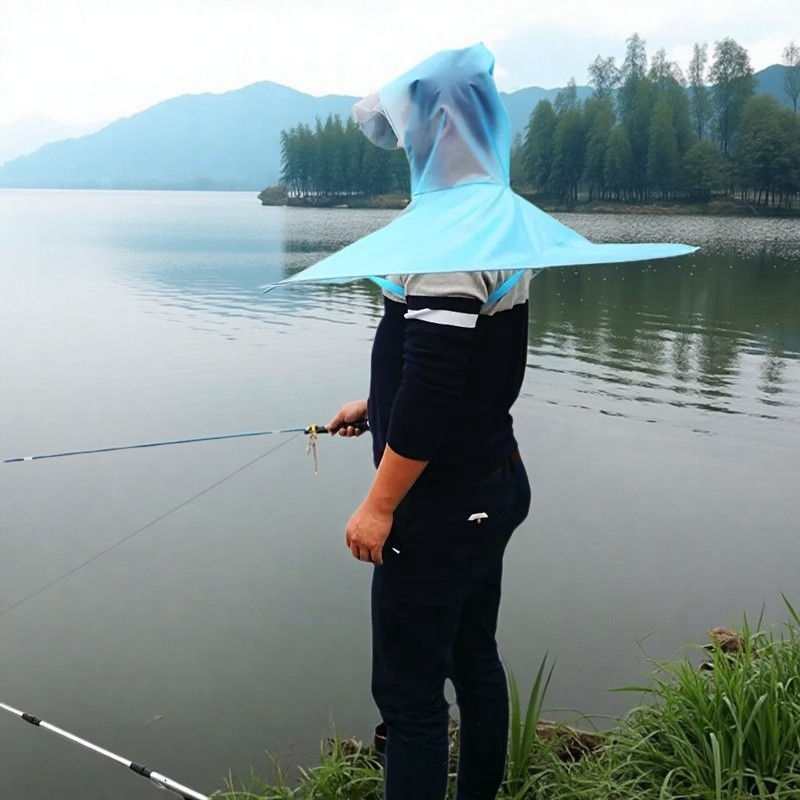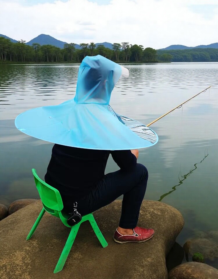 飞碟雨衣男士斗篷式防水钓鱼头盔