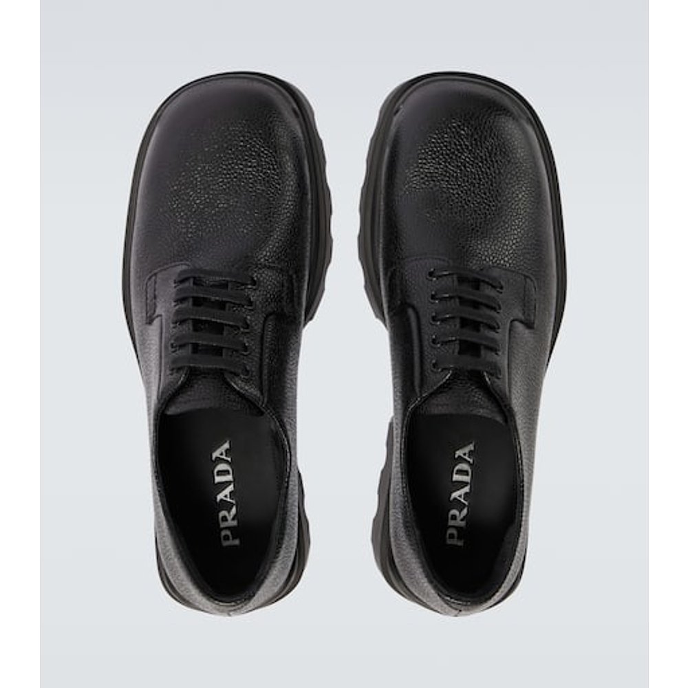 1h可退 香港直邮Prada 普拉达 男士 皮质德比鞋 black黑色 舒适时